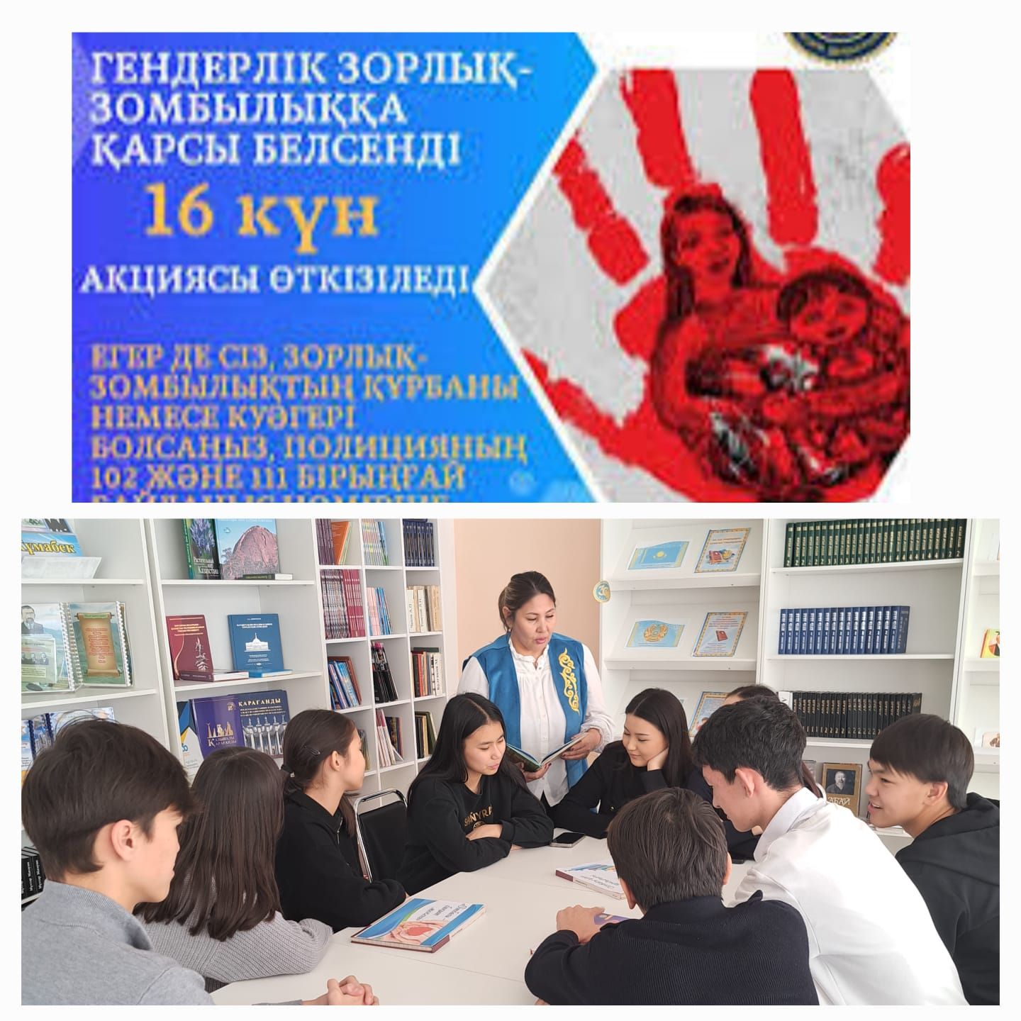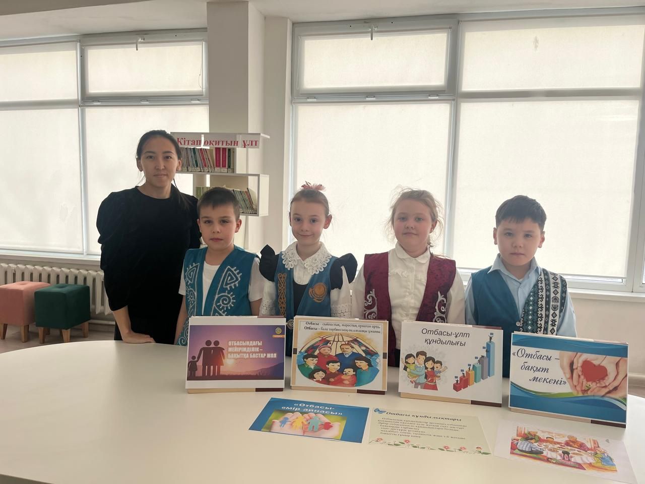 Сегодня учащиеся 3"З" класса посмотрели в школьной библиотеке выставку" Отбасы-мейірім мекені".