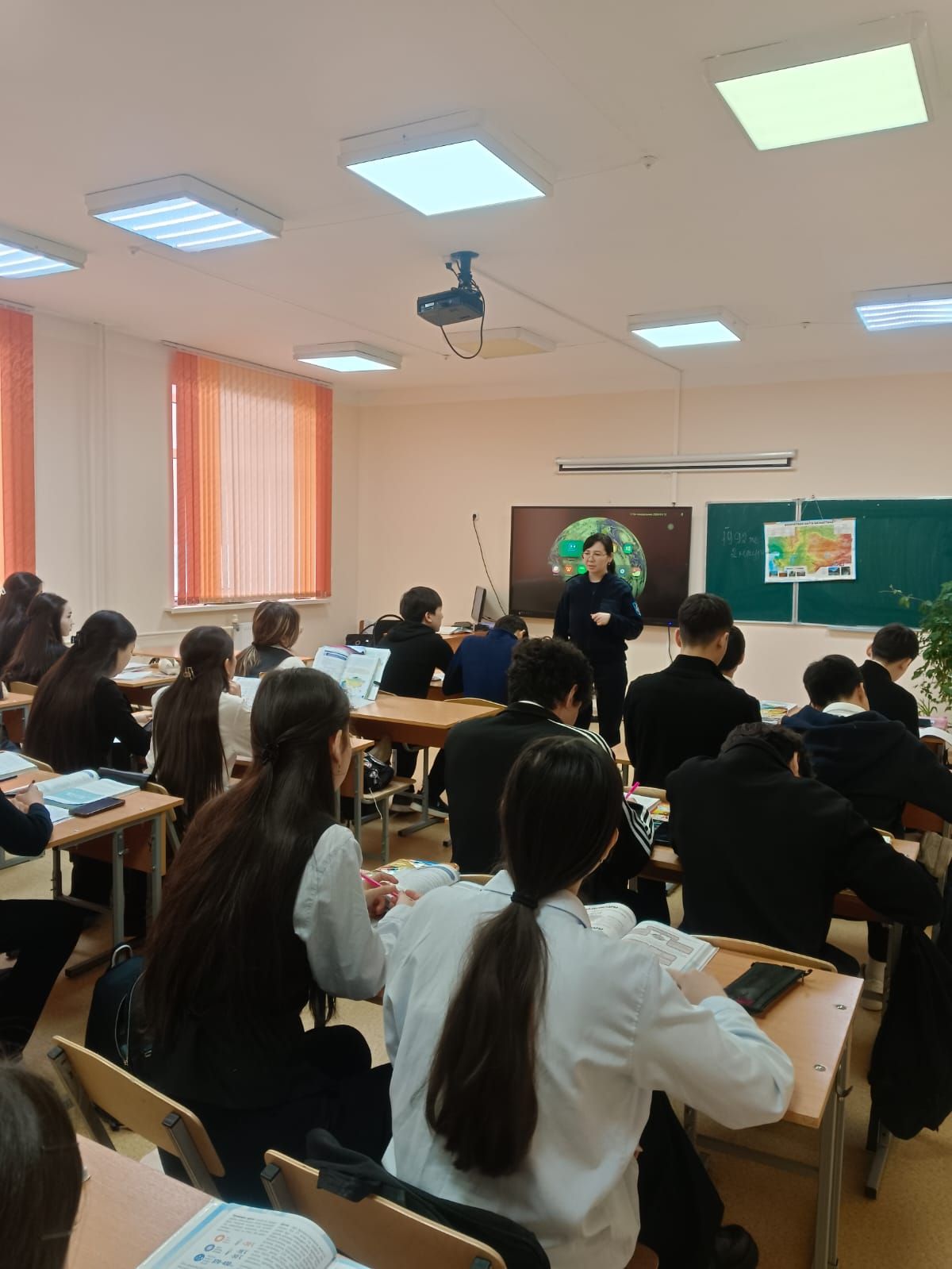 12.01.2026ж. Әл- Фараби атындағы мектеп – гимназиясында «Заң мен тәртіп»апталығы аясында құқық қорғау органдарының өкілдері білім алушылармен интерактивті диалог жүргізеді.