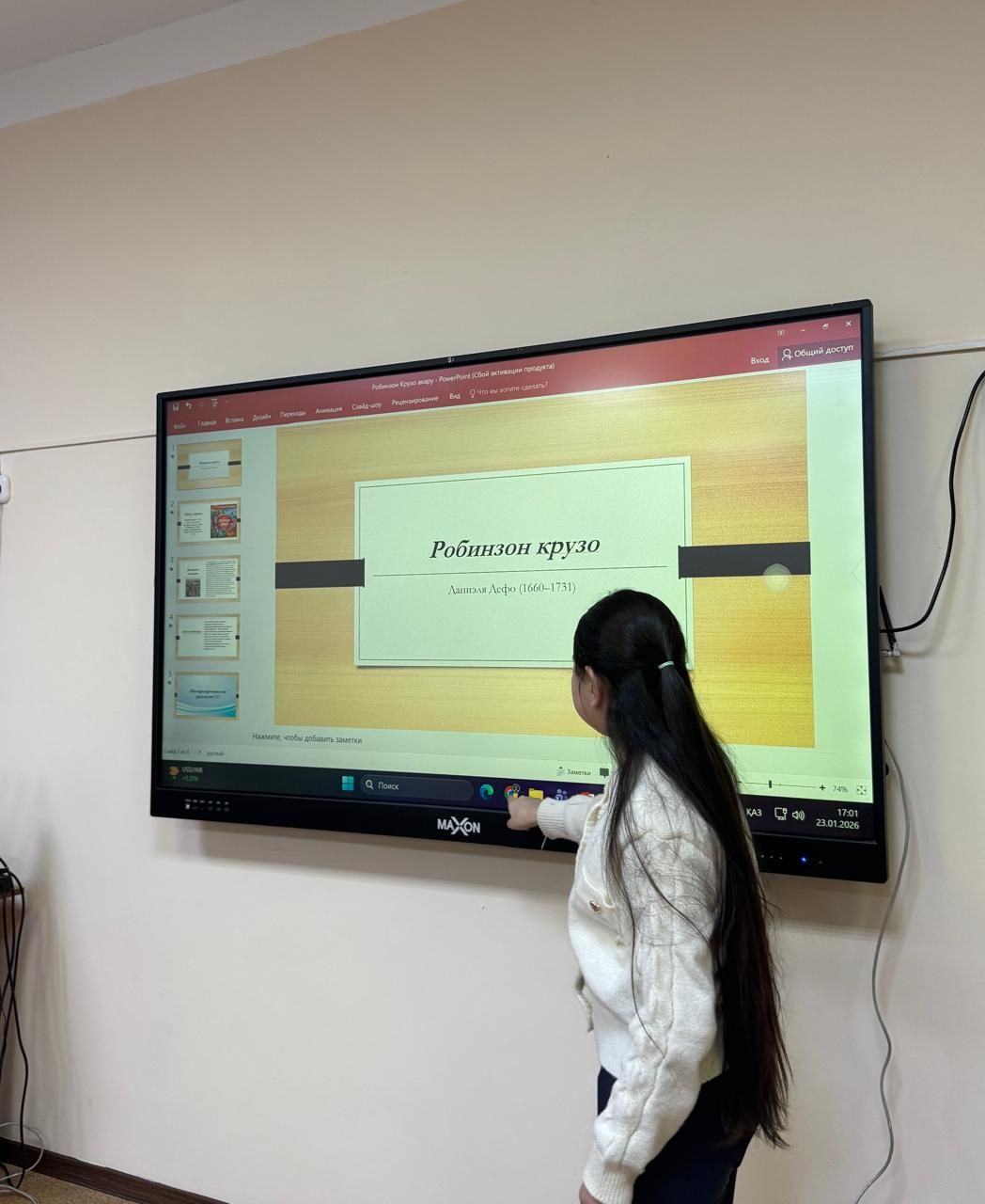 «Кітап оқитын ұлт» жобасы аясында 6-сынып оқушылары Д.Дефоның «Робинзон Крузо» шығармасын талдады. Шығарма желісі бойынша сұрақтарға жауап берді.