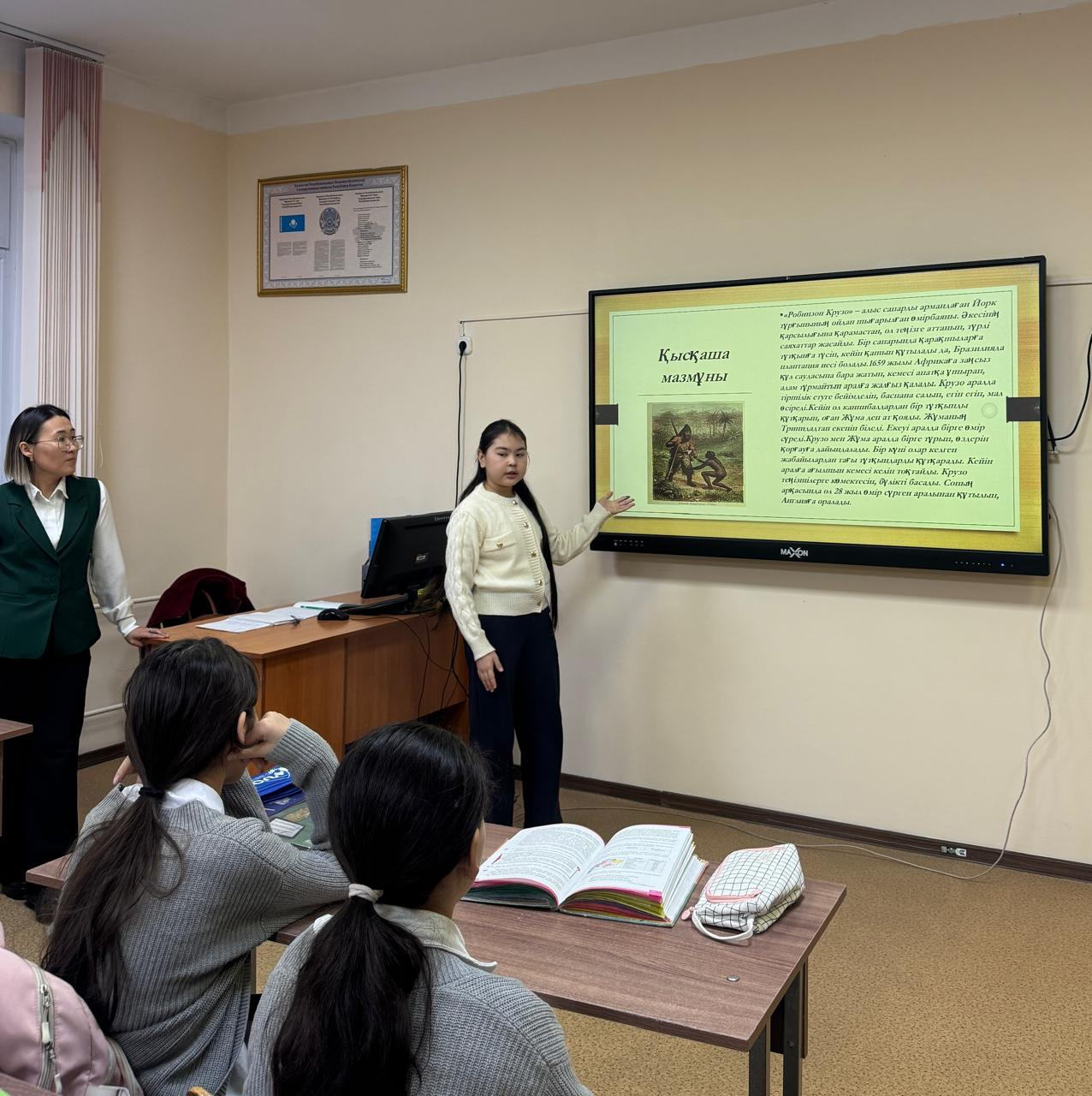 «Кітап оқитын ұлт» жобасы аясында 6-сынып оқушылары Д.Дефоның «Робинзон Крузо» шығармасын талдады.