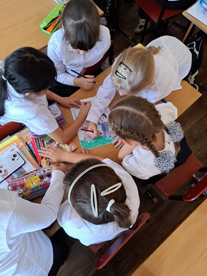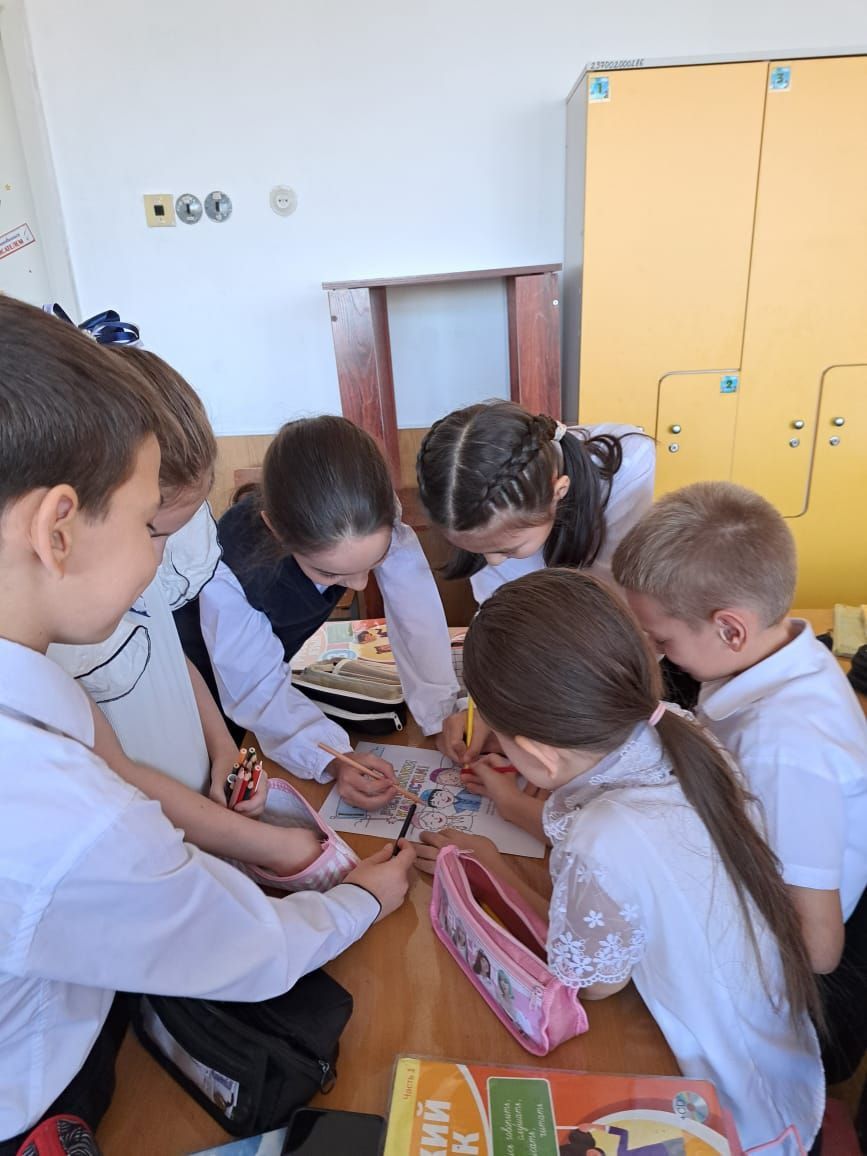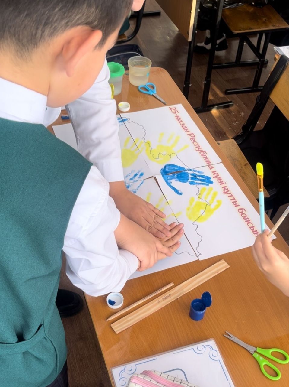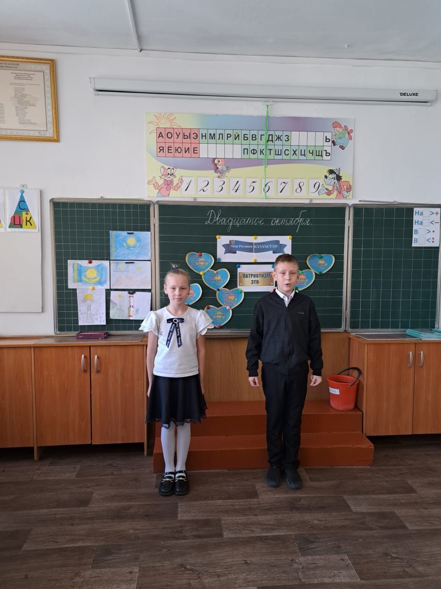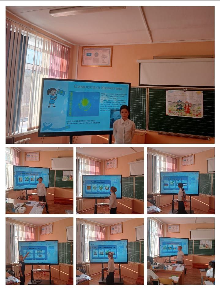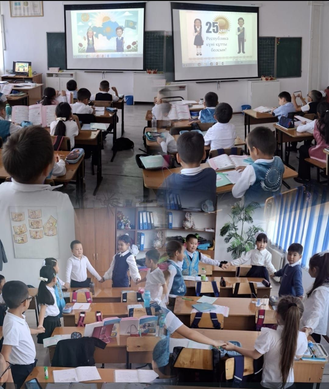 в 4"В" классе в рамках единой программы воспитания "Адал азамат" ко Дню Республики провели классный час, посвященный авторам государственных символов Казахстана. Учащиеся вспомни…