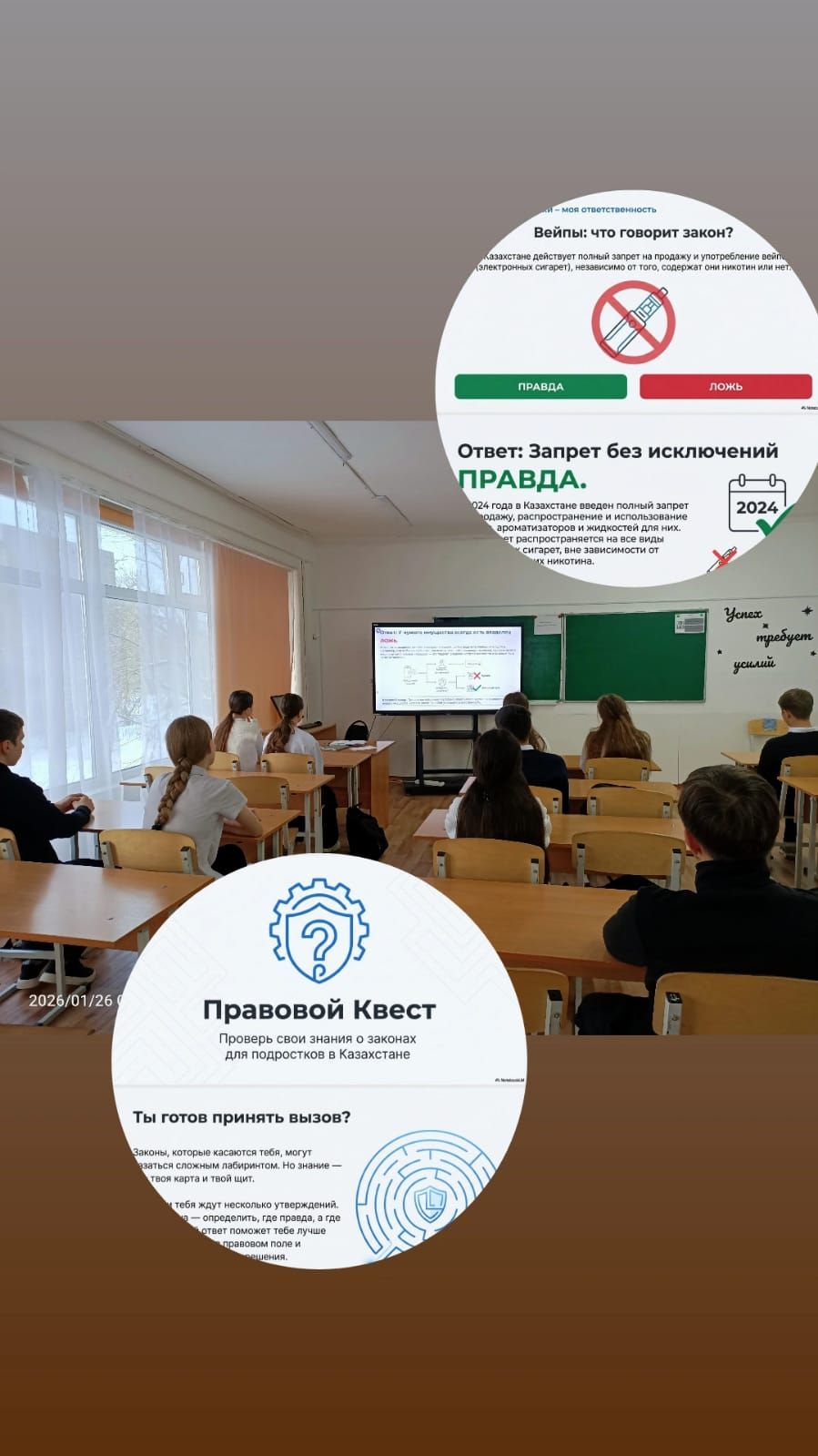 26.01.2026 г. КГУ ОШ 65 в 4 «Ж» классе провели классный час на тему: «Закон и порядок». На классном часу говорили о законе, о правах человека, что входит в их понятия, играли в викторину, разыгрывали…