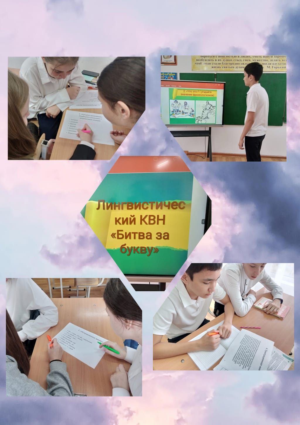 В рамках мероприятий посвященных "Дню языков народа Казахстана" в КГУ "ОШ 65" в 9 "Д" классе проходил Лингвистический КВН "Битва за букву", в котором ученики принимали активное участие.