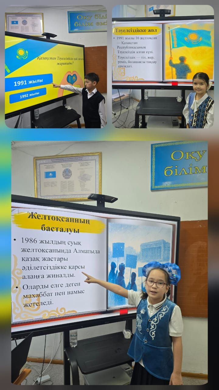 9.12.2025 жыл. "ТАРИХ ТОЛҚЫНДАРЫ" тарихи сауаттылық апталығында бастауыш сынып оқушылары арасында "Тарих іздері мен жазбалары" атты шығармашылық шара өтті. Онда оқушылар өткен тарихымызбен таныса от…