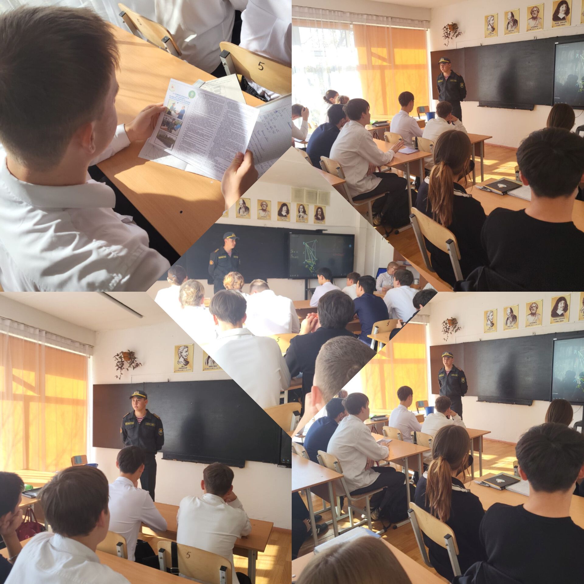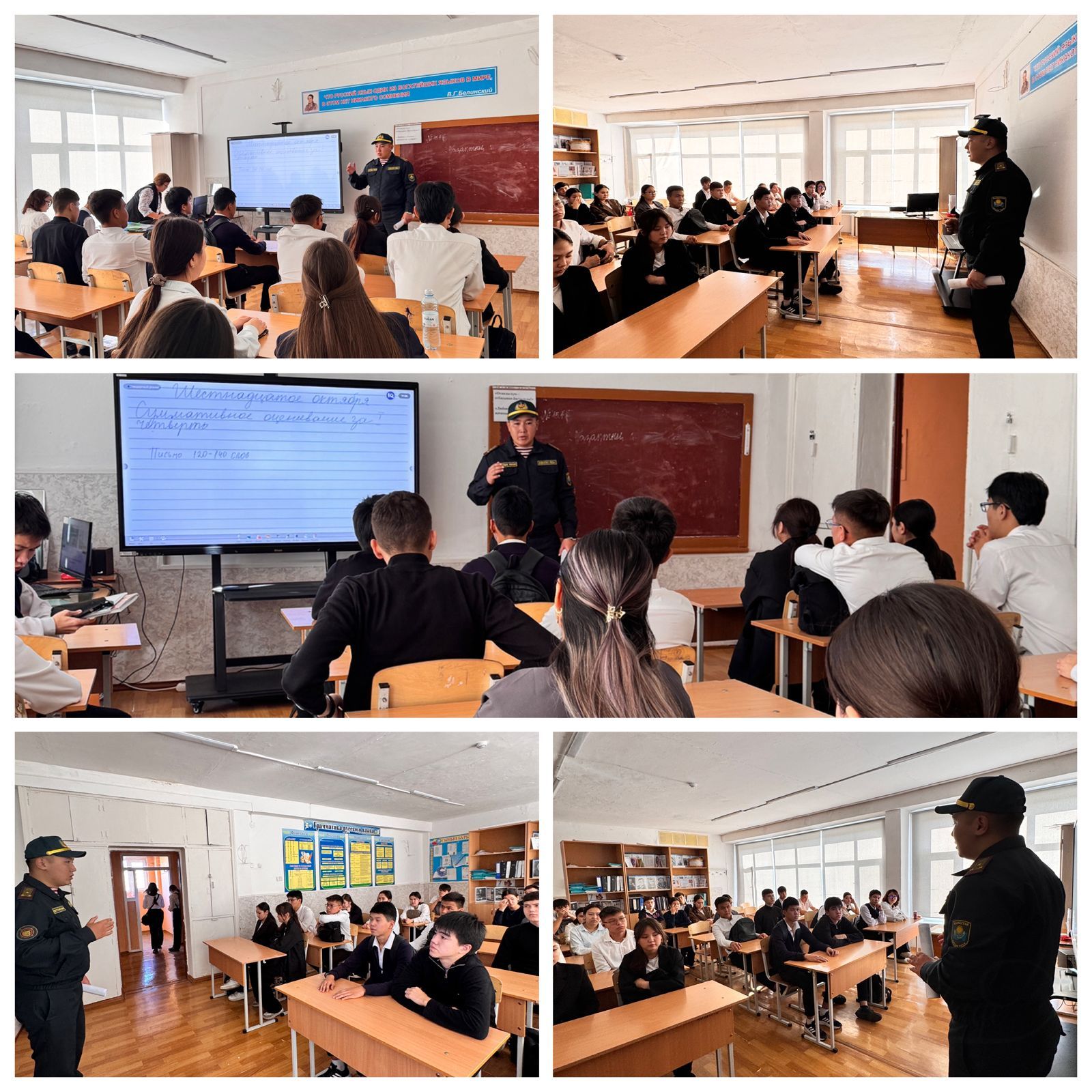 2025 жылдың 16 қазан күні кәсіптік бағдар беру жұмыстары аясында мектеп түлектері ҚР ҰҰ 5451 әскери бөлімінің өкілдері — аға лейтенант Рахметов Нұржол Есболұлы және аға лей…