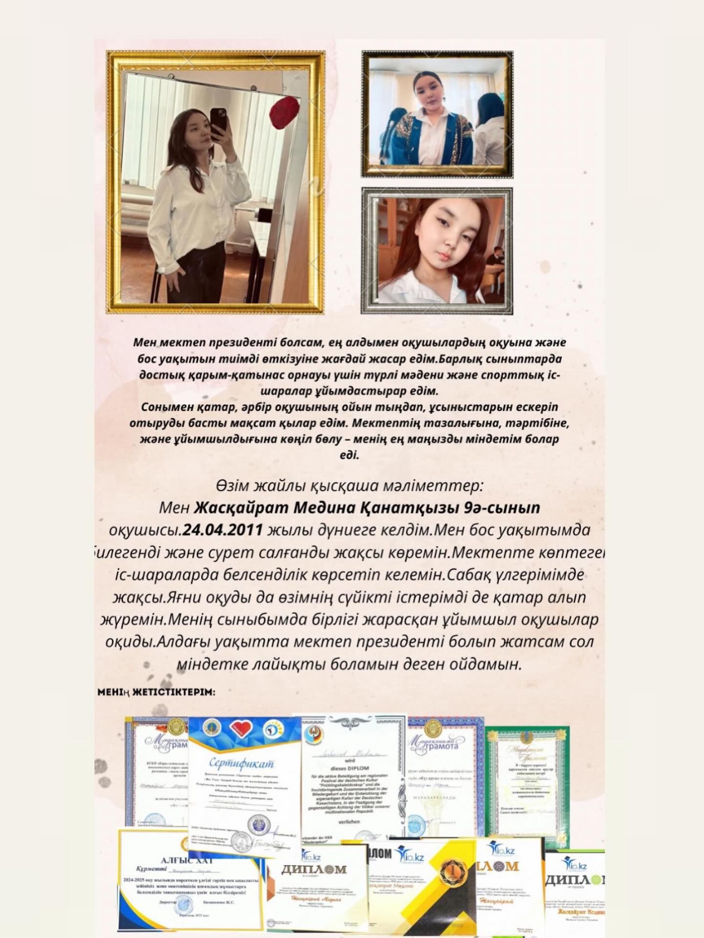 Мектеп Президентіне үміткер 9 Әсынып оқушысы Жасқайрат Медина #мектеппрезидентінсайлау2025