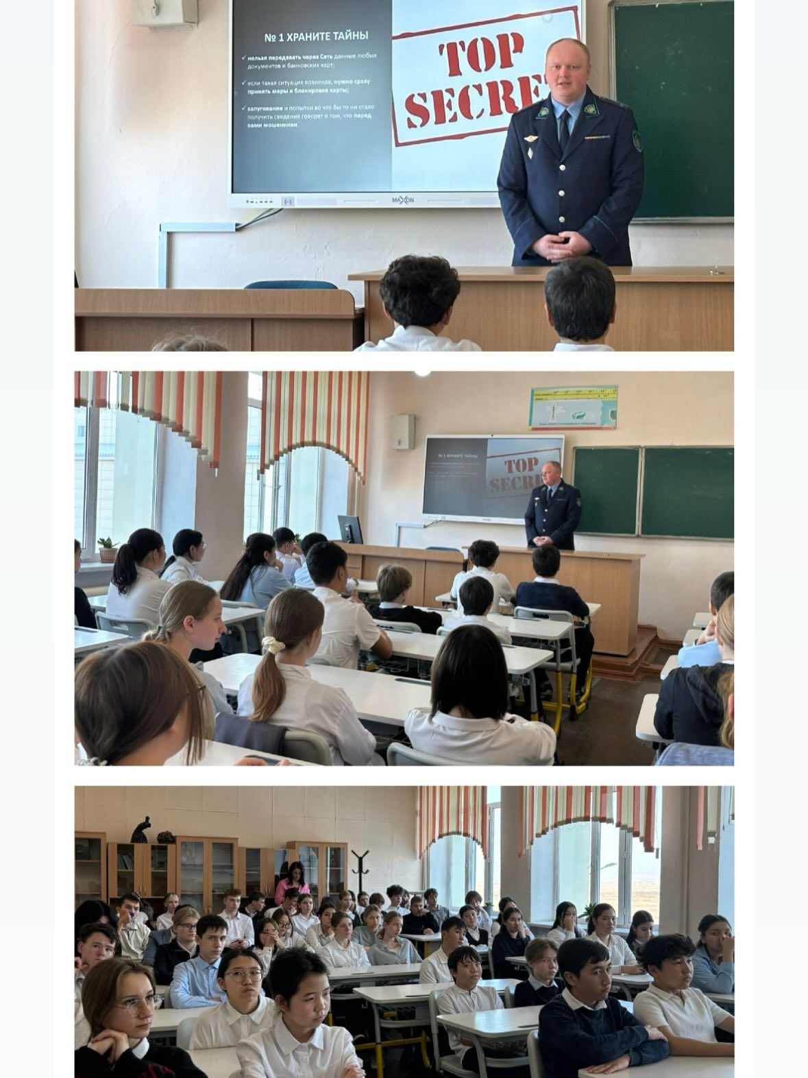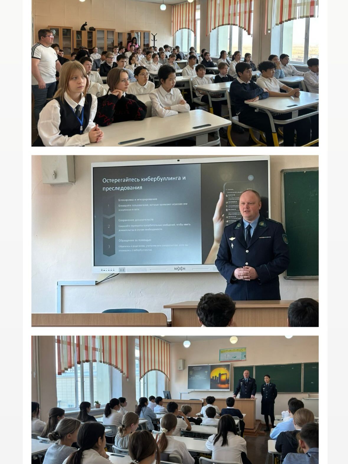 Бүгін, 19 қараша күні, мектебімізде Қазақстан Республикасы Ішкі істер министрлігінің Бәрімбек Бейсенов атындағы Қарағанды академиясының мамандары Урстенова Дарина Данияровна және Тафинцев Павел Анатольевич «Интернет пен әлеуметтік желілердегі қауіпсіздік