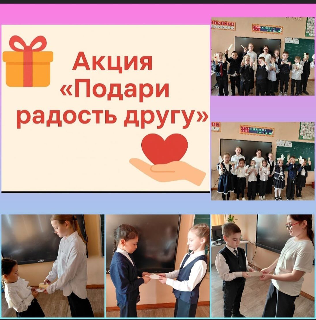 В рамках акции «Подари радость другу» учащиеся 4А класса подготовили и вручили ученикам 1А подарки, сделанные своими руками. Ребята проявили творчество и внимание, а первоклассники получили тёплые и приятные сюрпризы. #подарирадостьдругу #толерантность @g