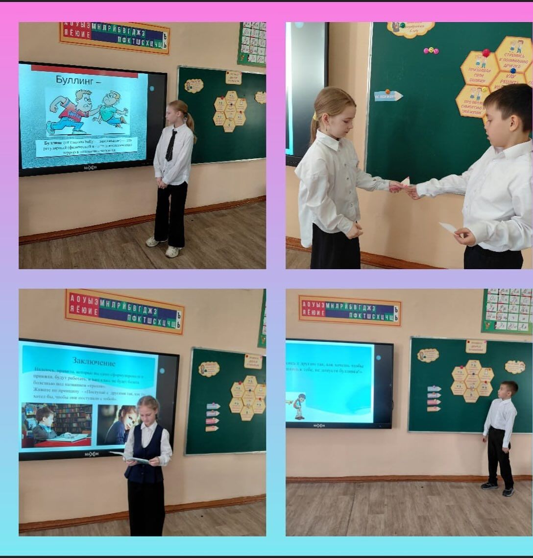 Сегодня в 4А классе прошёл классный час на тему “Относись к другим так,как хочешь,чтобы относились к тебе. Не допусти буллинга “,на котором ребята говорили о доброте, уважении и недопуст…