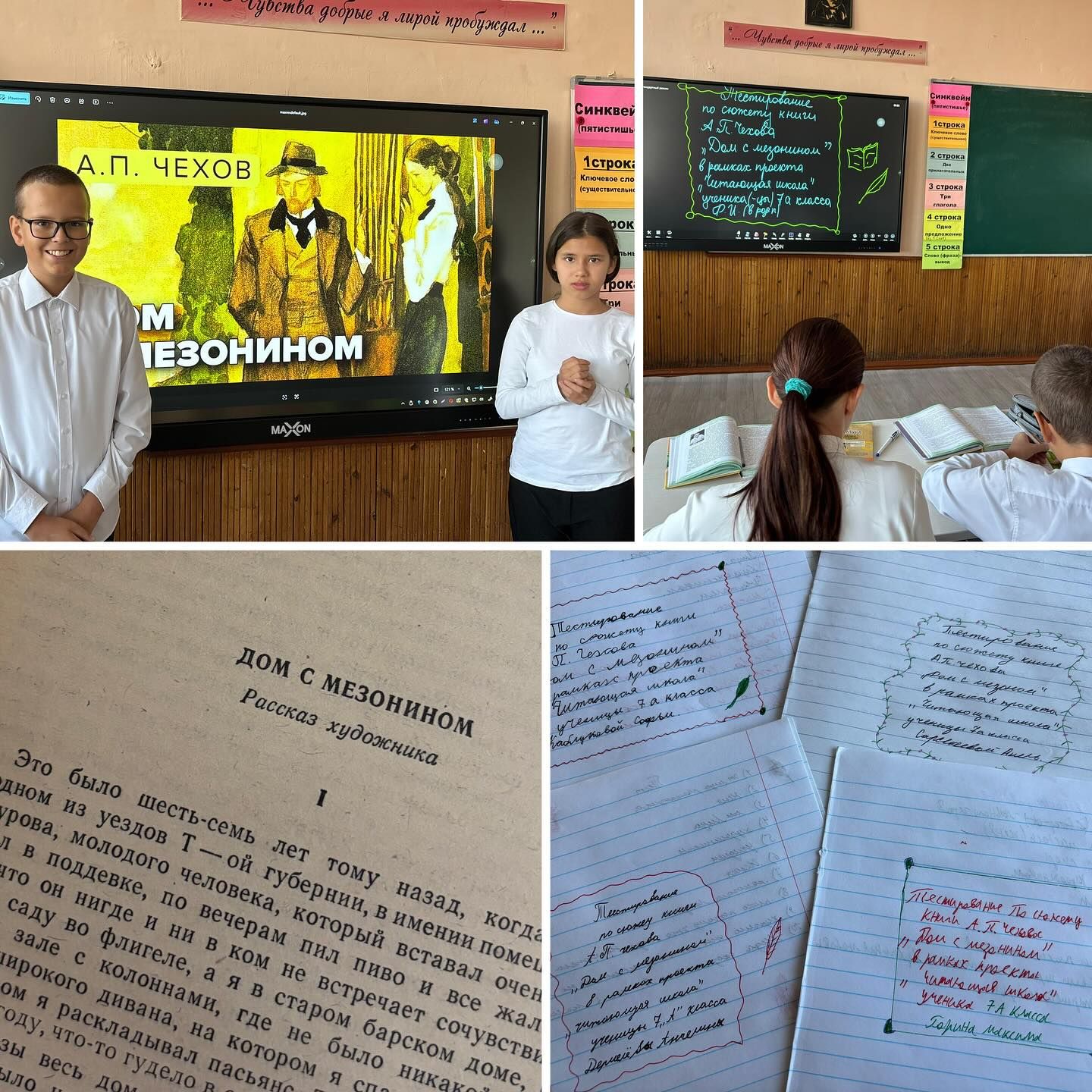 В рамках проекта “Читающая школа” ребята из 7а класса совместно с классным руководителем прочитали и сделали анализ рассказа А.П.Чехова “Дом с мезонином”, а 21 октября для уч…