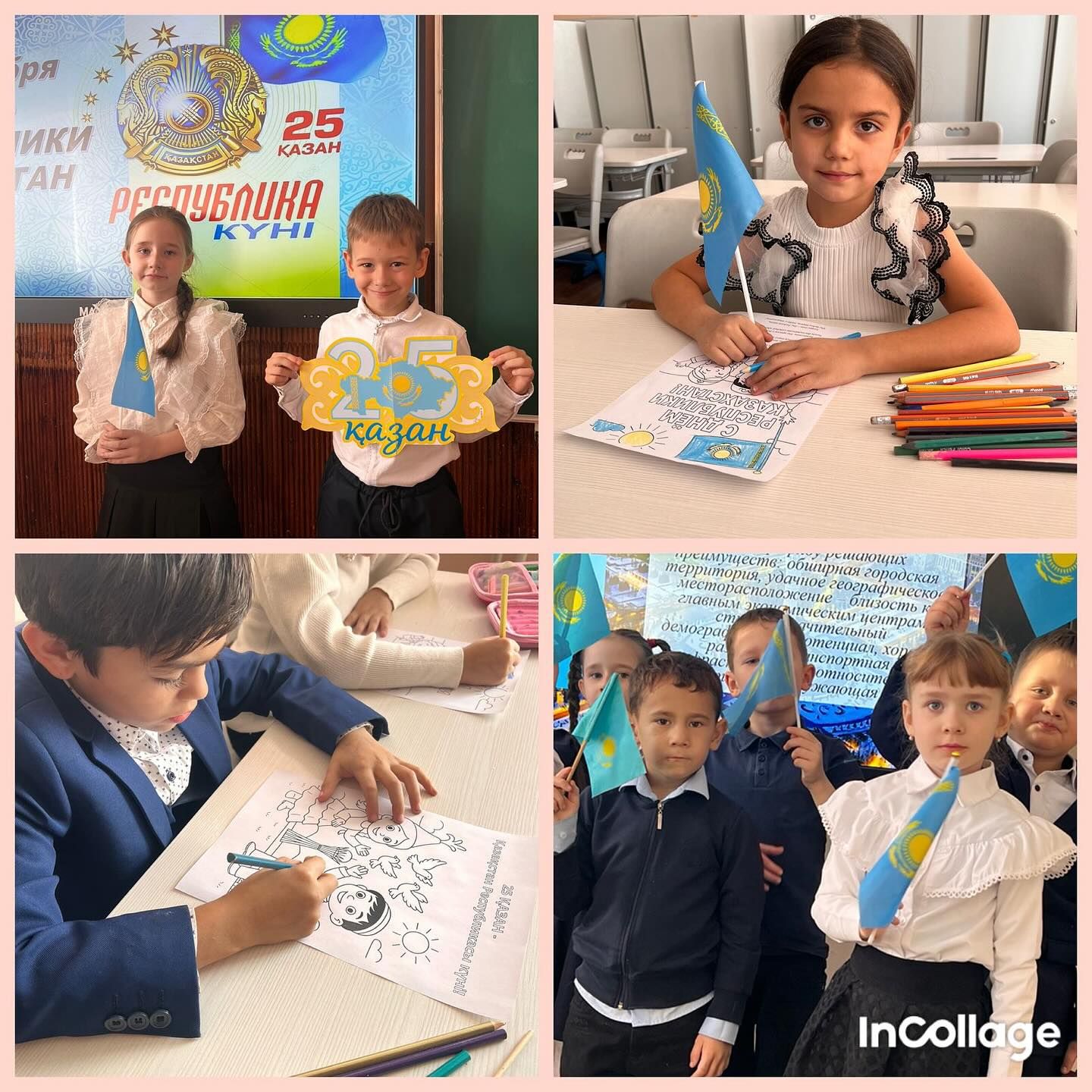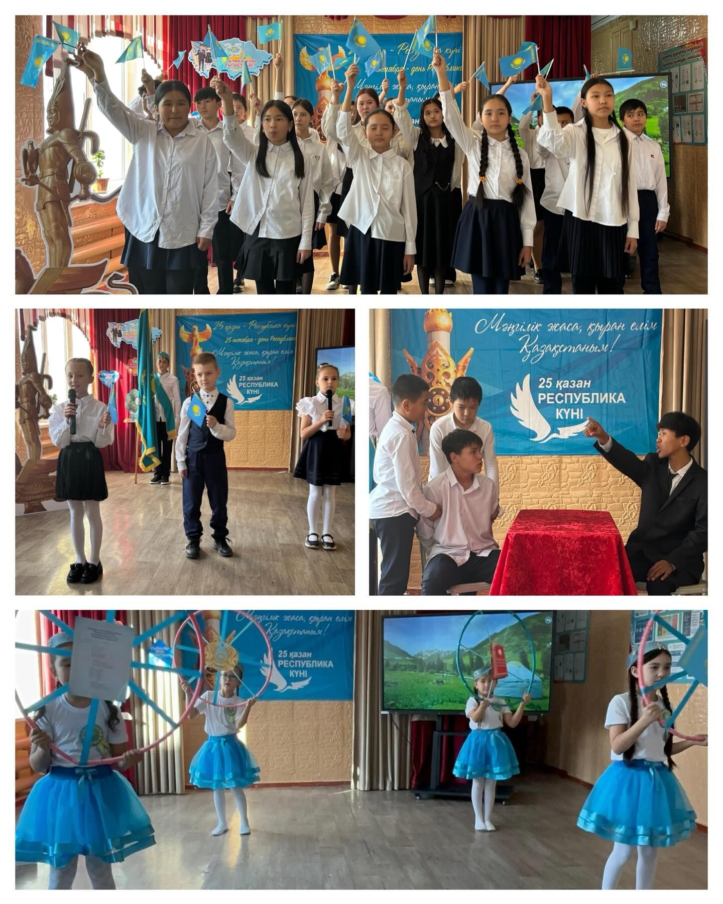 Бүгін мектебімізде 25 қазан-Республика күні және Мемлекеттік егемендік туралы Декларацияның 35 жылдығына орай«Республика күніне тартуым» атты мерекелік іс-шара өтті.