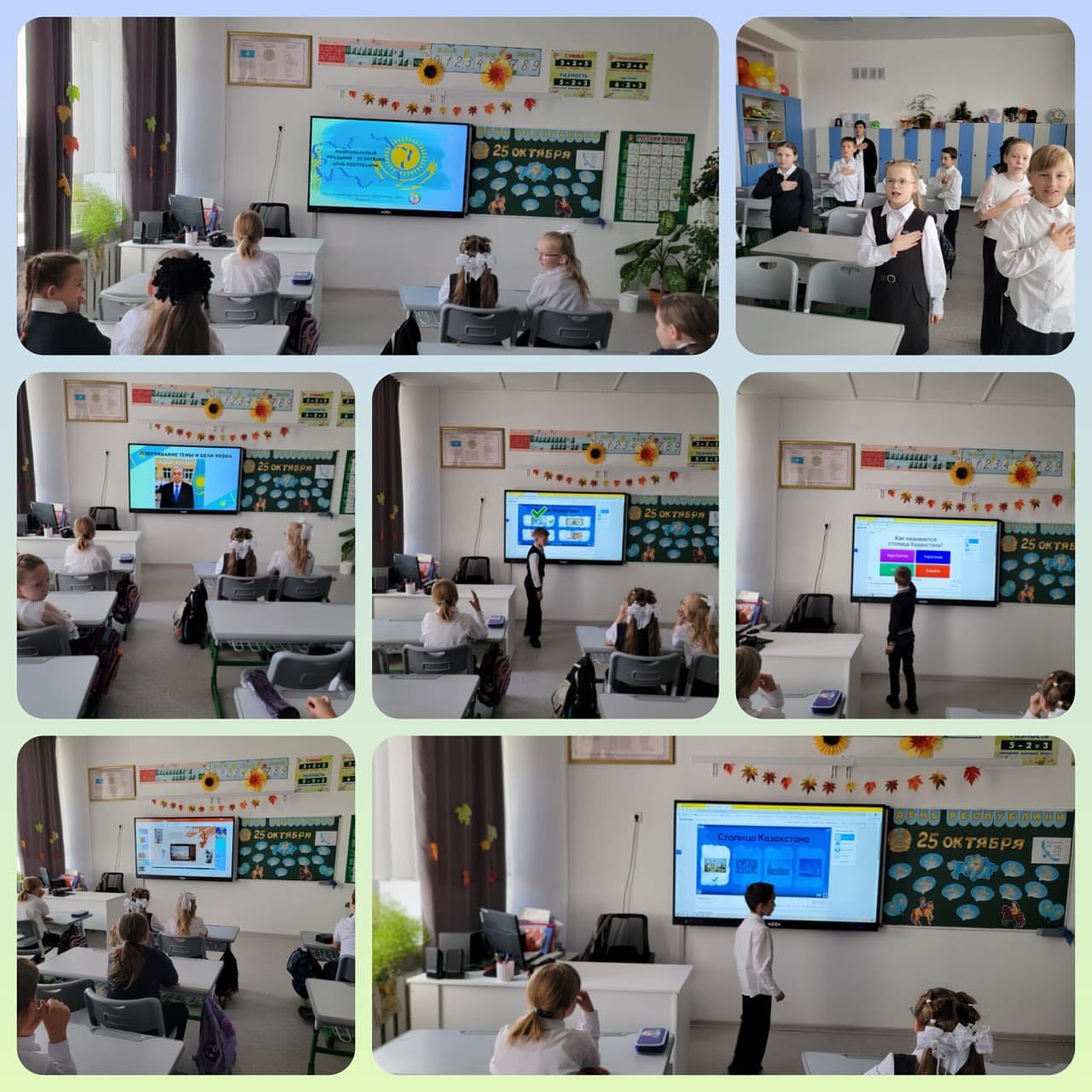24.10 в 4 «Б» классе прошёл классный час на тему «25 октября- День Республики Казахстан ».