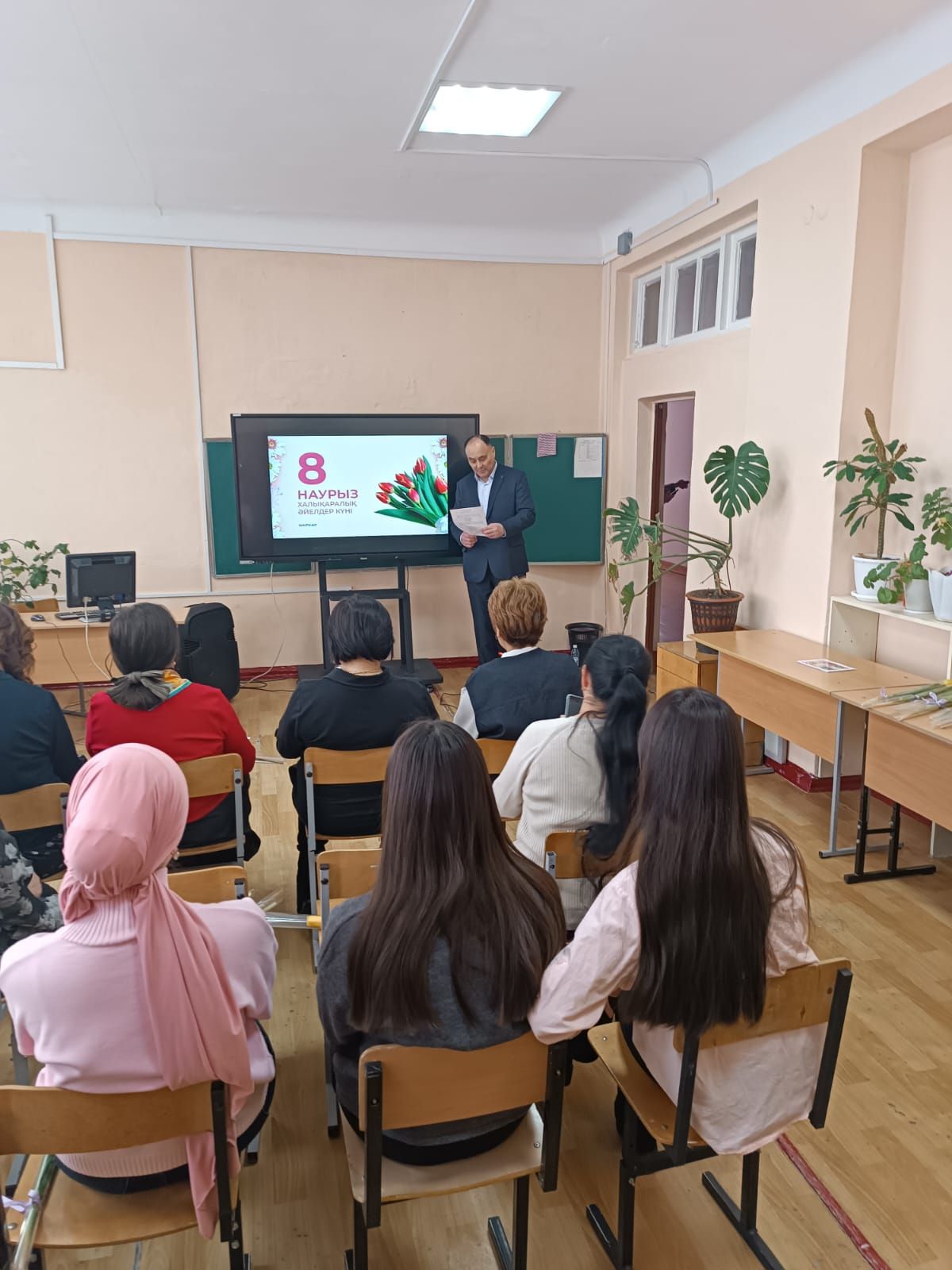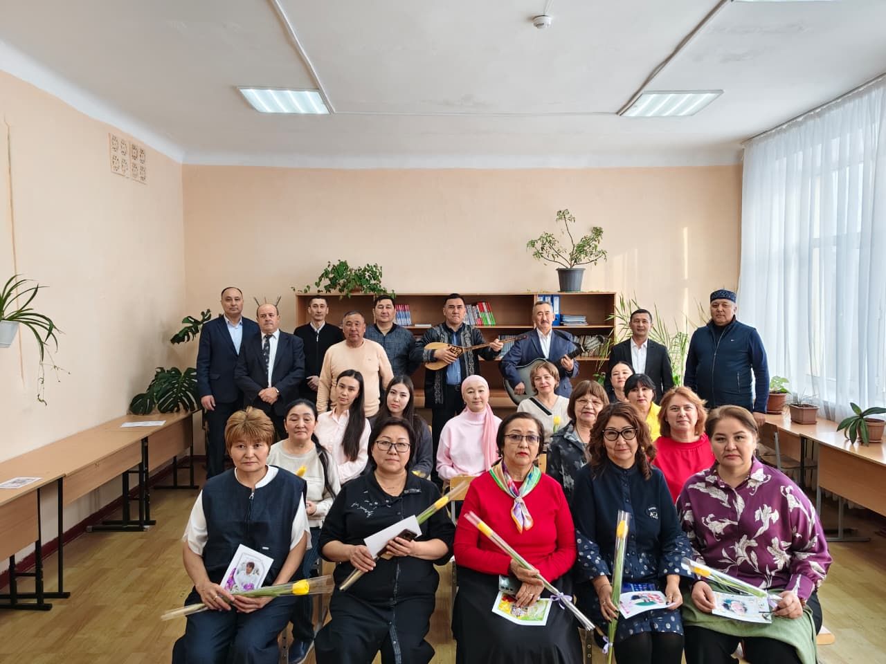 Учащиеся и мужчины педагогического коллектива КГУ "ВШ № 100" поздравили женщин коллектива и родительниц с Международным женским днём.