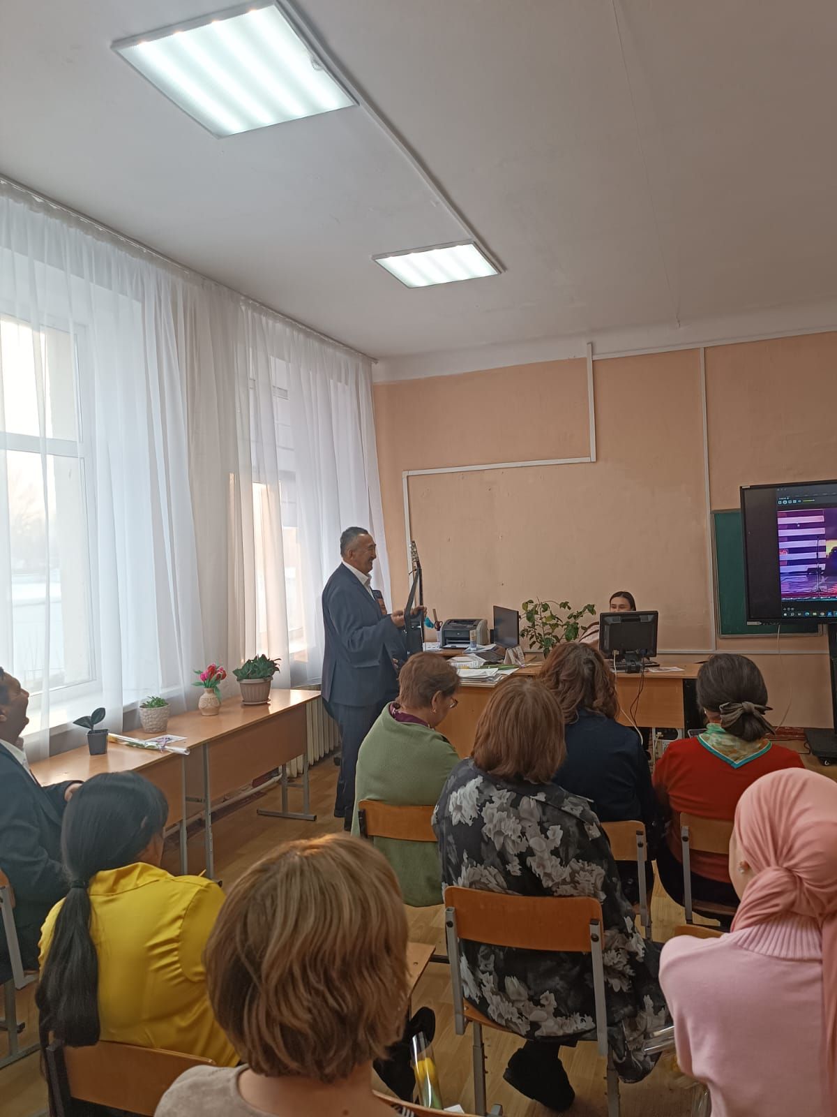 В рамках проекта "Читающая нация" в КГУ "ВШ № 100" библиотекарь Хумарбек Х. провела мероприятие, посвященное изучению казахских былин и сказаний.