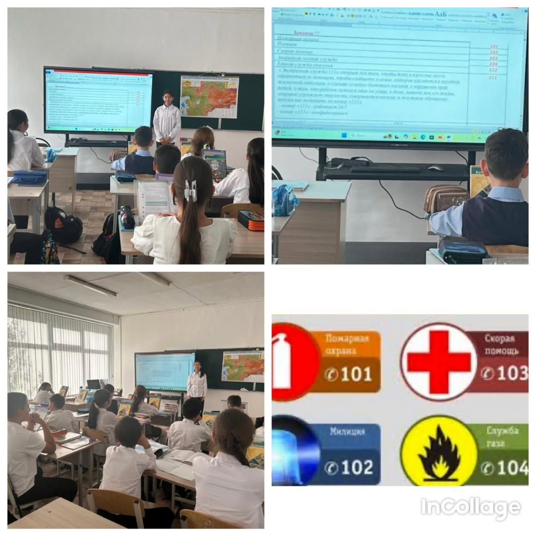В 5 «Б» классе прошёл классный час на тему:" Номера Экстренных служб". Кл. руководитель:Актаева ГК