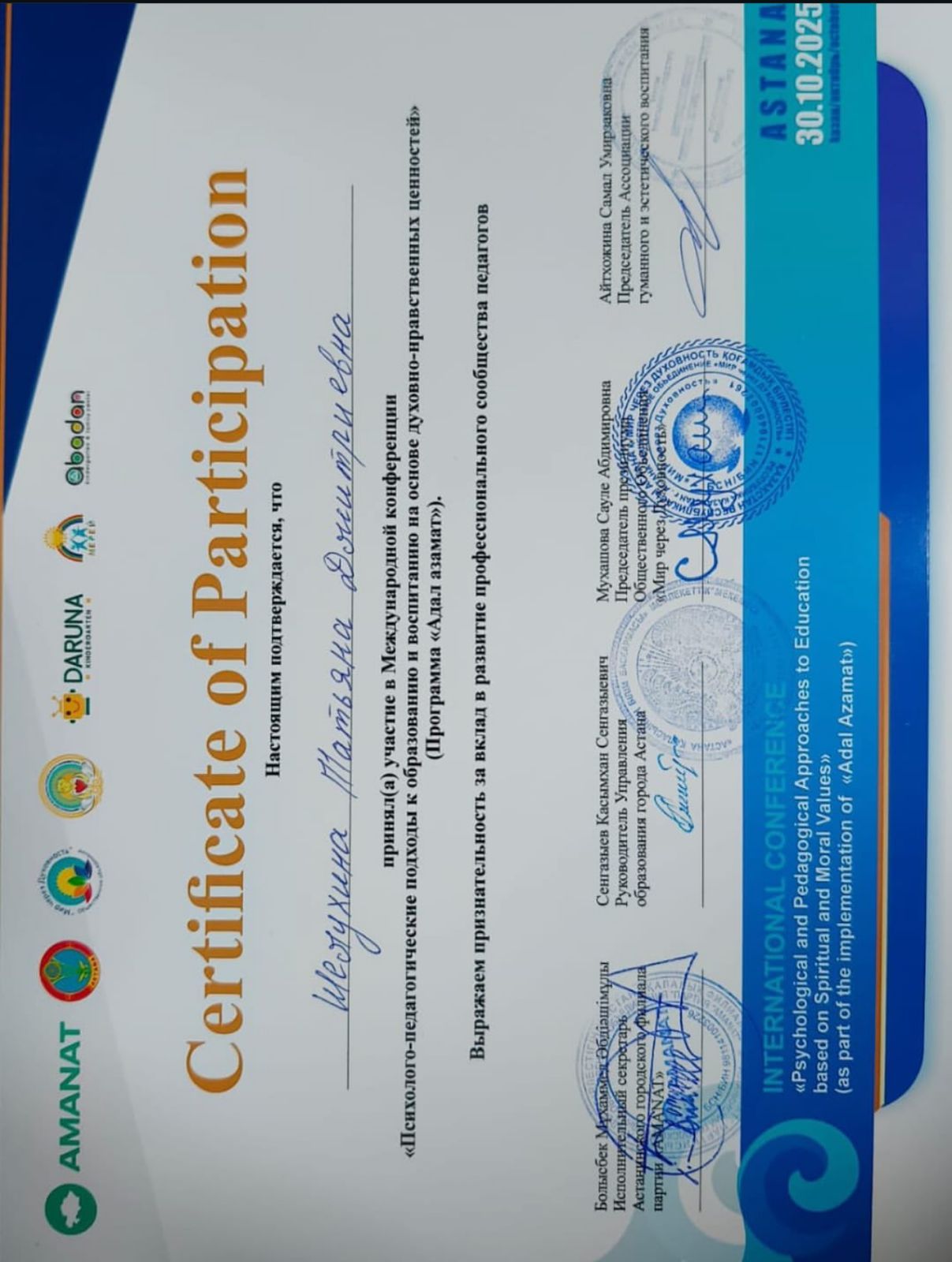 Учителя начальных классов: Карп Е. В. и Шелухина Т. Д. приняли участие в международной конференции в г. Астане, которая была посвящена крайне актуальной теме: «Психолого-педагогические подходы…