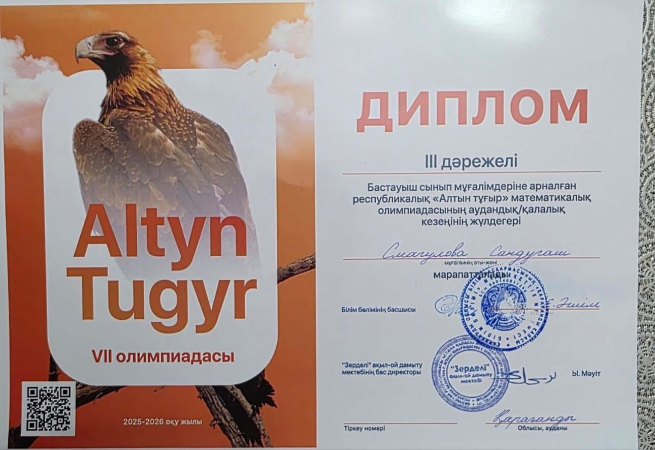 Математика пәнінен бастауыш сынып мұғалімдеріне арналған “Алтын тұғыр” республикалық олимпиадасының қалалық кезеңінде мектебіміздің бастауыш сынып мұғалімі С. Смагулова ІІІ орын иеленді.…