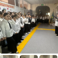 Бүгін мектепте "Жол қозғалысы ережелері" тақырыбында саптық жиын өтті. Саптық жиынды 6 "Б" сынып оқушылары дайындап, өткізді. Балалар барлық қатысушыларға жол қозғалысы ережелерін сақтаудың маңыздылығын еске салып, көшеде және жолдың жанында өзін қалай ұс