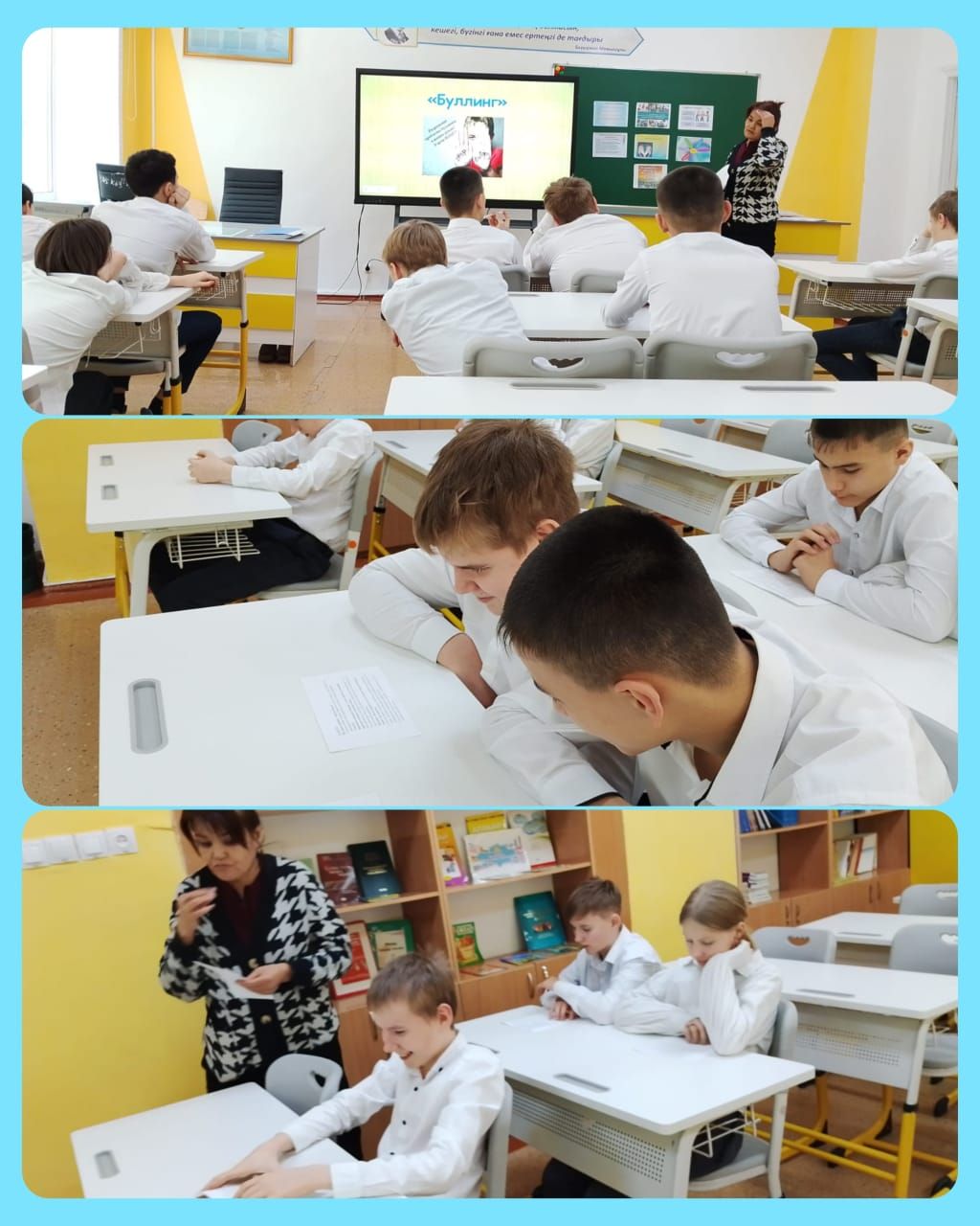 В КГУ «Школа-интернат № 4» в 7-х классах воспитателем Омербаевой Н.Е. был проведенклассный час и урок безопасности, на тему «Буллингтен қорған!»в рамк…