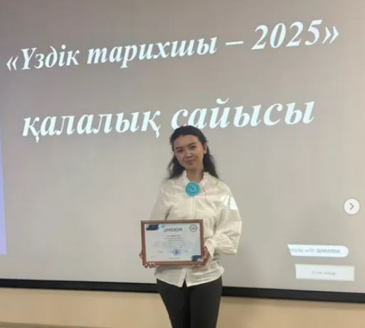Тәуекел Жанара Кайратовна – магистр педагогических наук, учитель истории нашей школы заняла III место в конкурсе «Үздік тарихшы - 2025», который прошёл в школе-лицее имени А. Ермек…