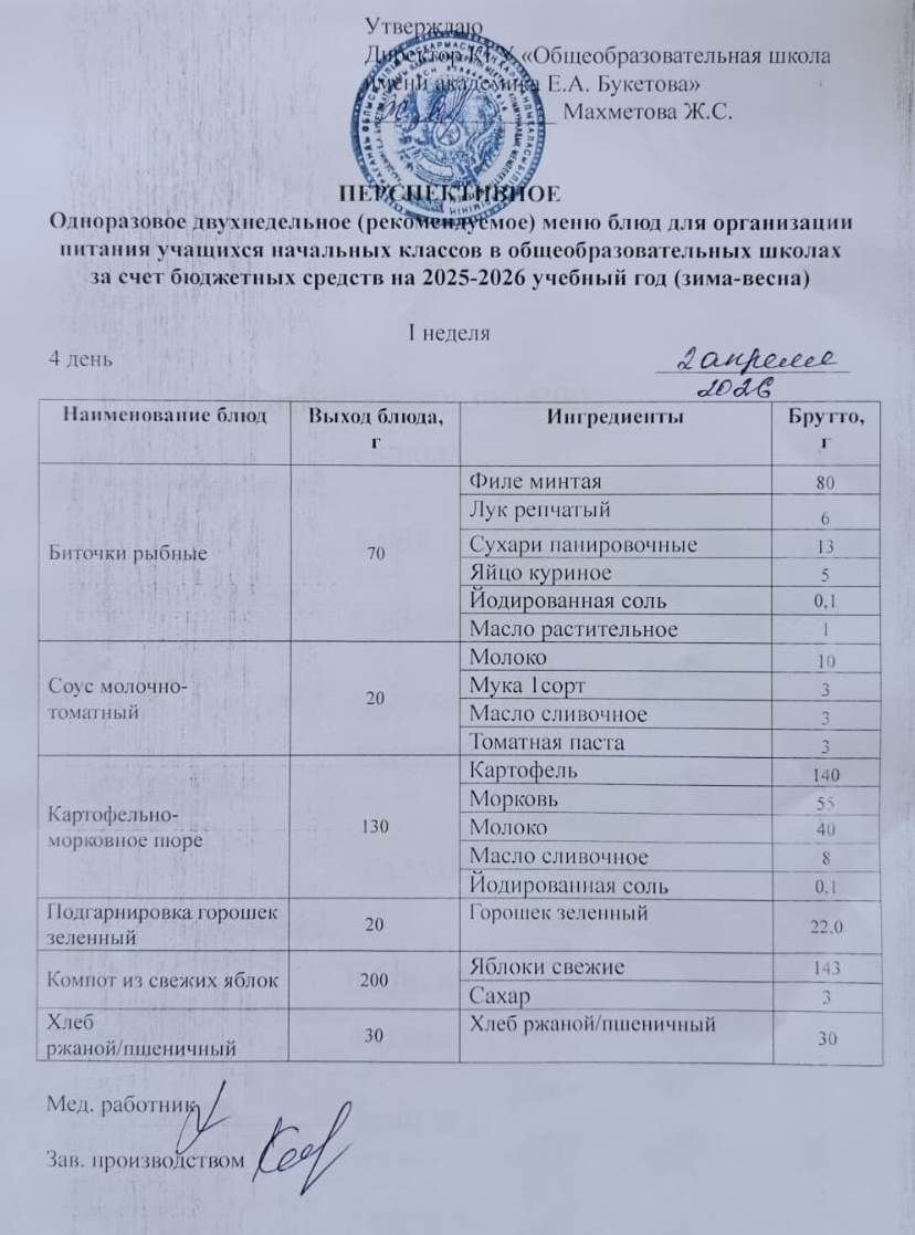 Питание школьников 2 апреля 2026 года