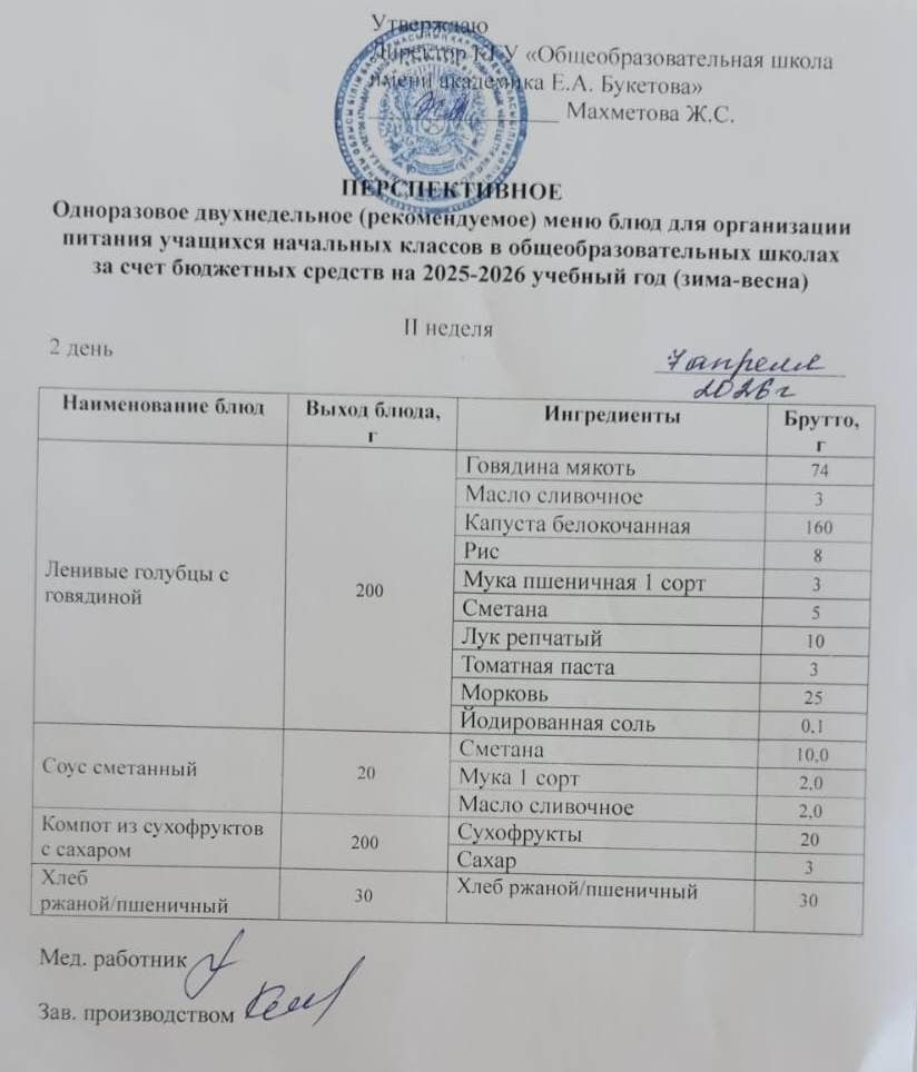 Питание школьников 6 апреля 2026 год