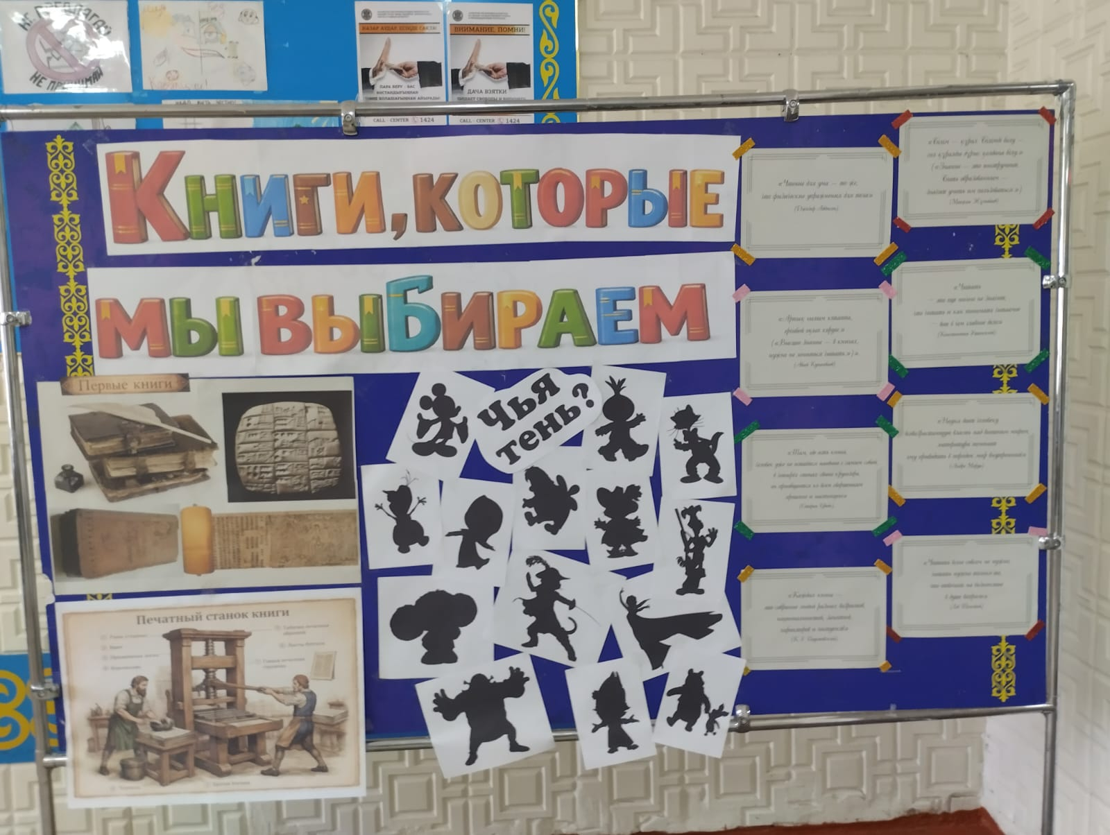 Ұлттық кітап күніне орай "біз таңдаған кітаптар" стенді безендірілді. Бастапқыда қандай кітаптар бейнеленген, ұлы адамдардың оқу мен білім алудың пайдасы туралы дәйексөздері қойылған. Баст…
