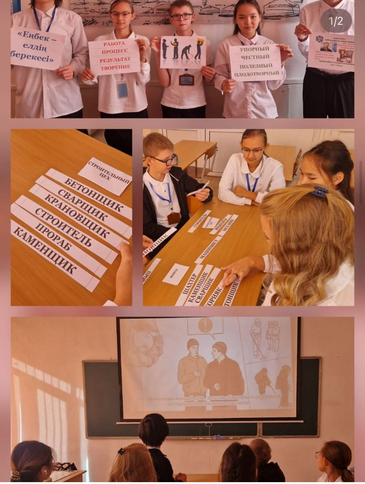 Сегодня в 8 “Б” классе прошел классный час “Еңбек-елдің берекесі”.