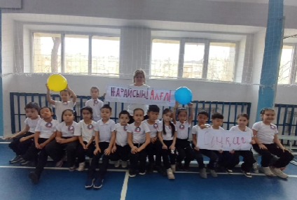 Бастауыш сынып апталығының онкүндігі аясында 1”А”, 1”Ә”, 1”Ғ” сыныптар арасында “Көңілді мәре” атты спортық сайыс өтті.