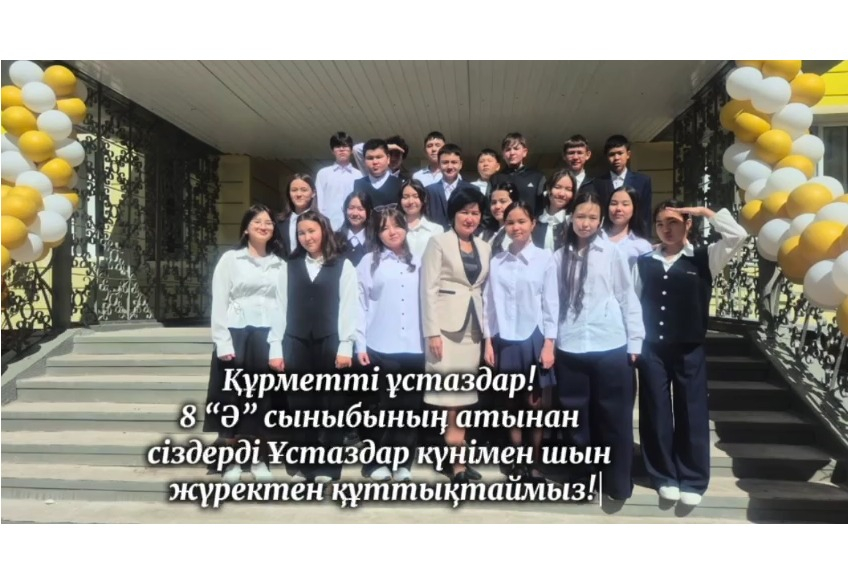 8"Ә" сынып оқушылары дайындаған Мұғалімдер күніне арналған бейнеқұттықтау.