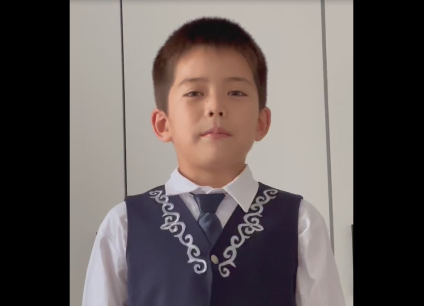 3"Ә" сынып оқушысы Бекежан Нұрәли өз ұстазын құттықтауы.