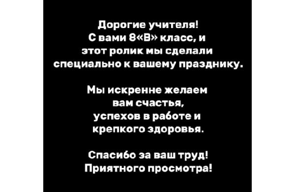 8"Ә" сынып оқушылары дайындаған Мұғалімдер күніне арналған бейнеқұттықтау.