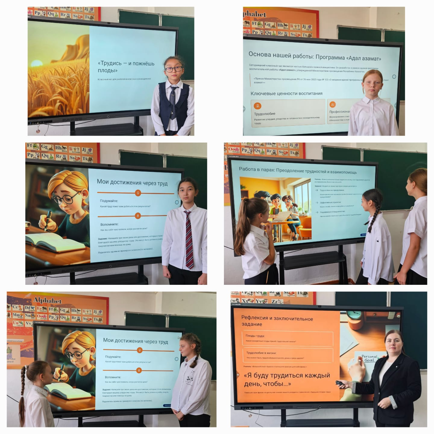 22 сентября 2025 года в рамках проекта "Адал азамат", проведён классный час "Трудись - и пожнёшь плоды".