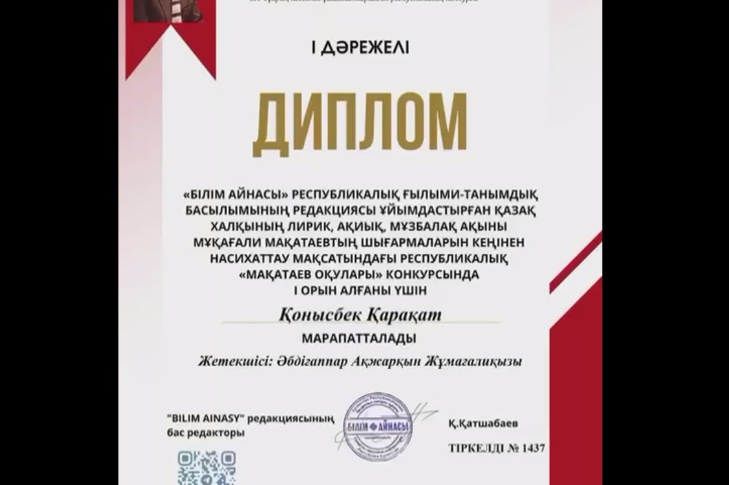 01.10.25-25.10.25 ж.ж. аралығында “Bilim Ainasy” республикалық ғылыми-танымдық редакциясының ұйымдастыруымен 514-бұйрық негізінде "Мақатаев оқулары" республикалық шығармашылық…