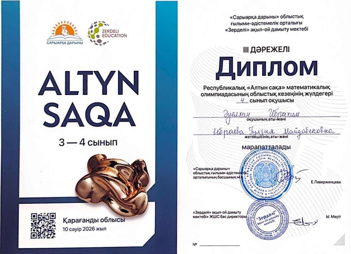 Республикалық «Алтын сақа» математикалық олимпиадасының облыстық кезеңінің 3 дәрежелі жүлдегері 4”Ә” сынып оқушысы Әуелхан Ибрахимді құттықтаймыз!