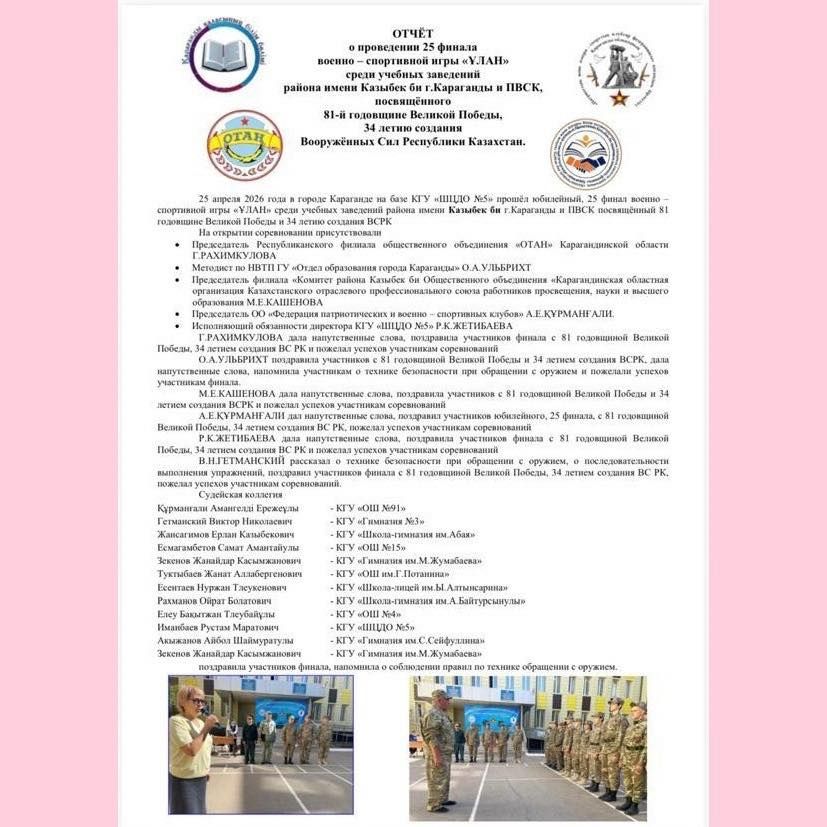 Қарағанды қаласы Қазыбек би атындағы ауданның білім ошақтары арасында өткен «Ұлан» әскери-спорттық ойынында оқушыларымыз ІІІ орынға ие болды.