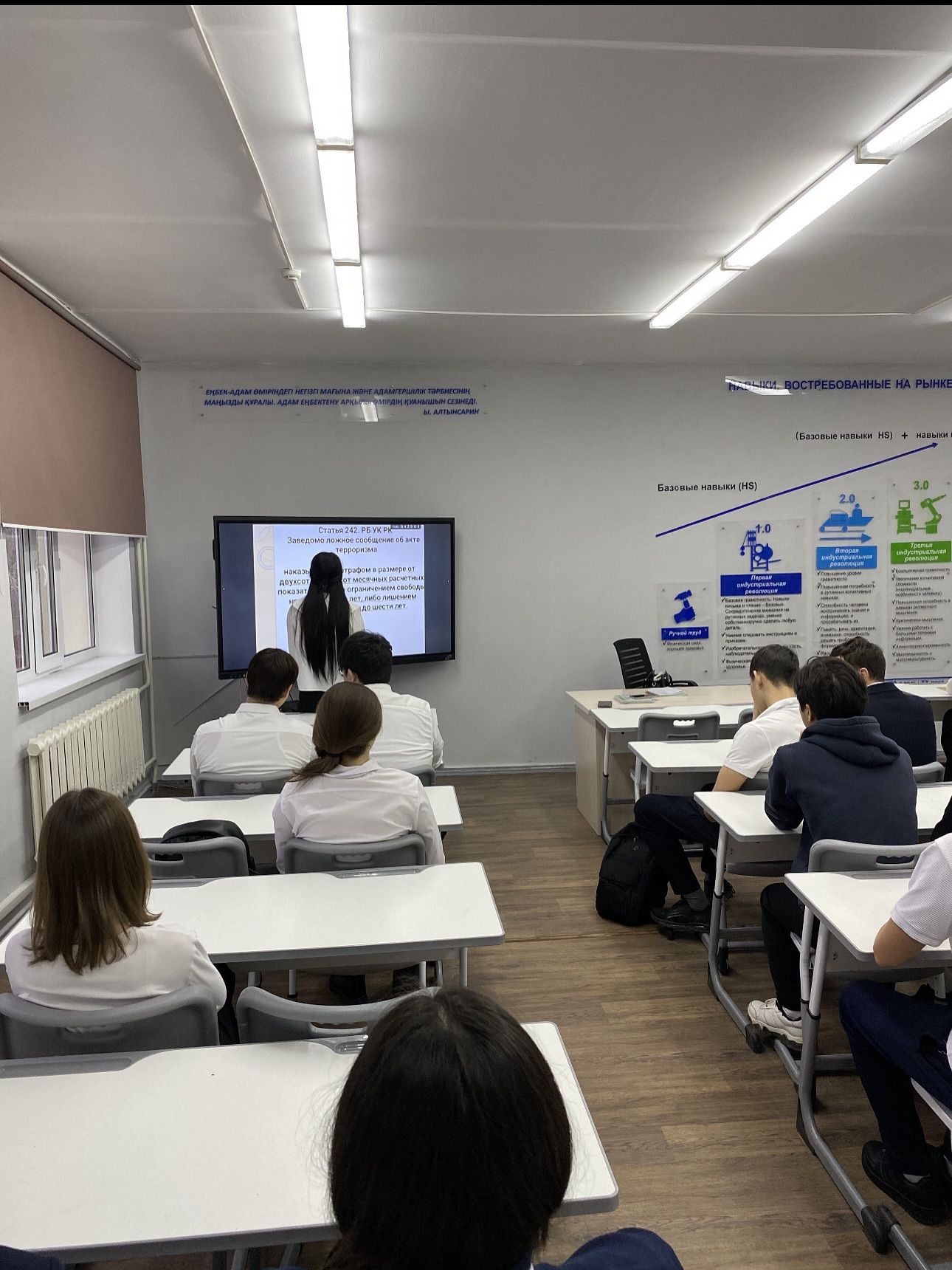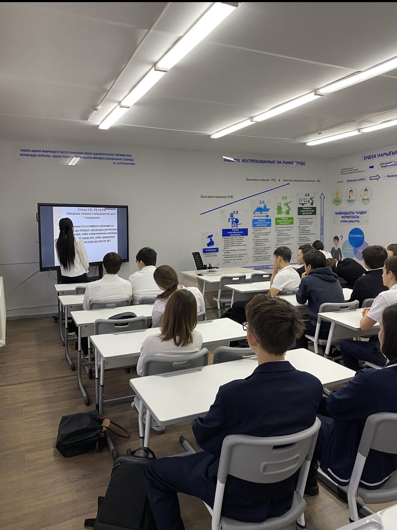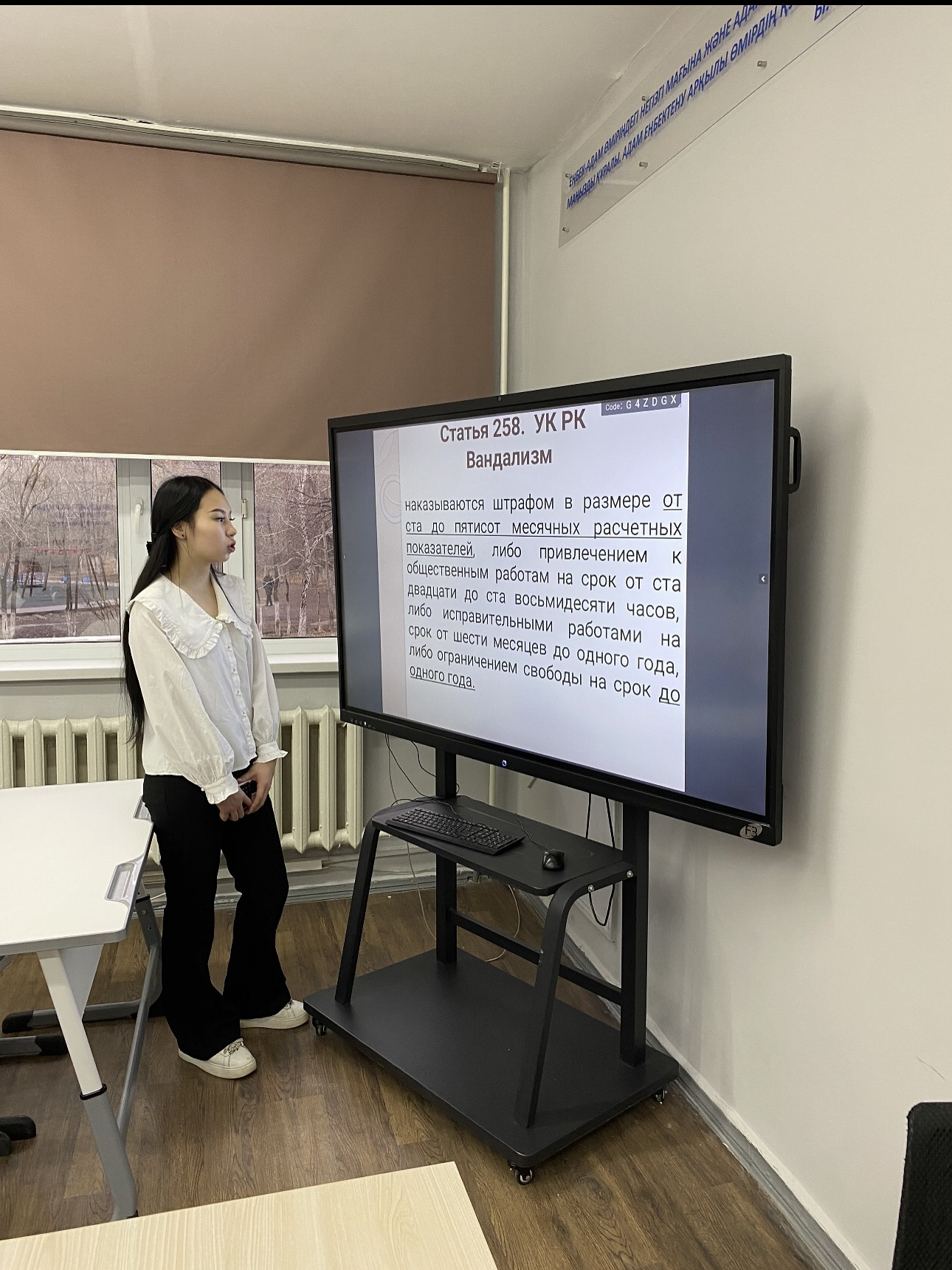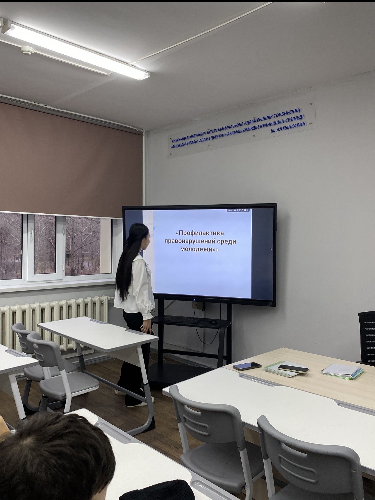 24.11.2025 11А сыныпта «Жастар арасында құқық бұзушылықтың алдын алу» тақырыбында сынып сағаты өткізілді. 11А сынып оқушысы Альбина Мұхаметжанова тұсаукесер жасады.