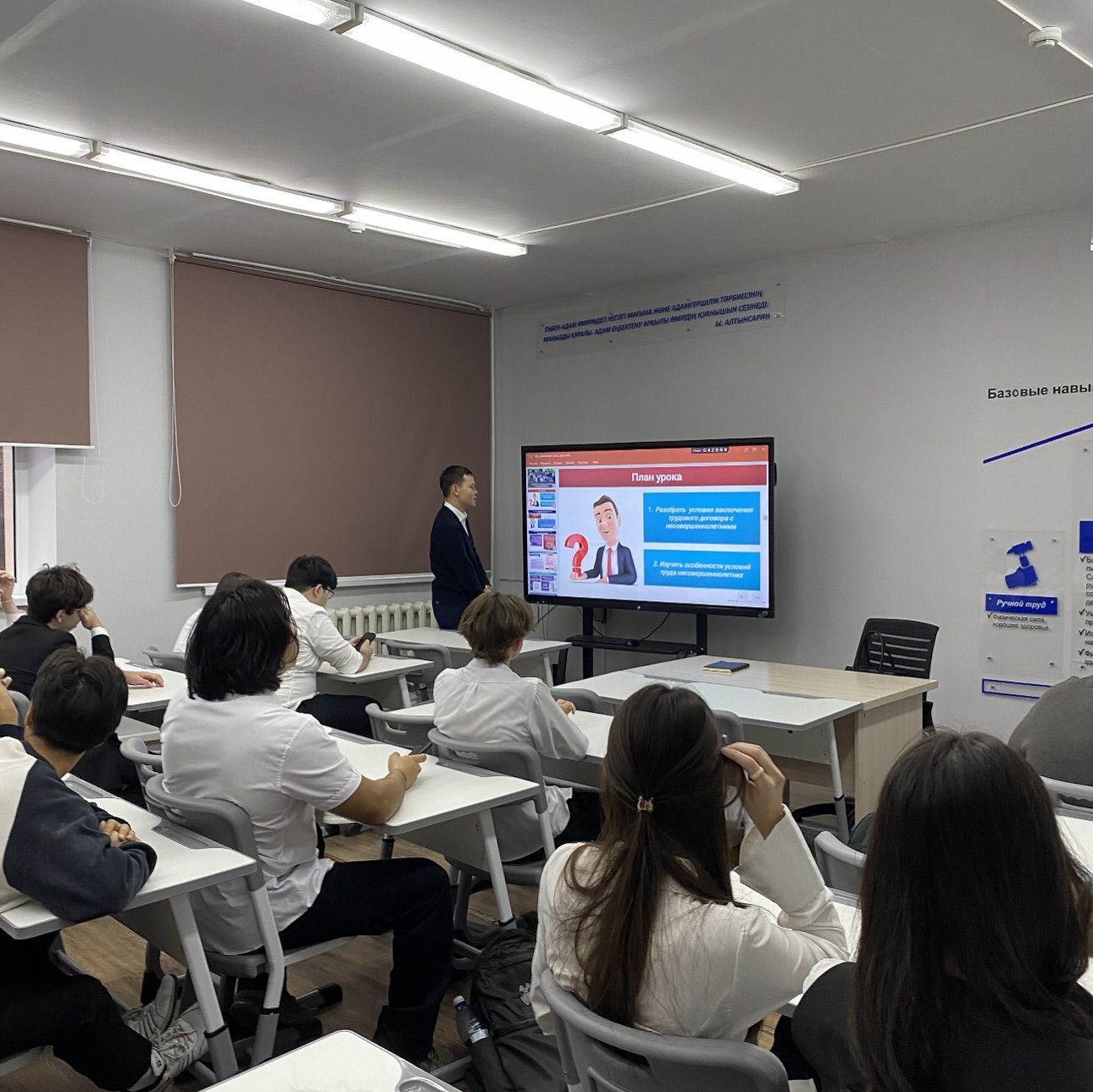 03.11.25 11А сыныпта «Адал өмір сүру керек» және «Кәмелетке толмағандарды жұмысқа орналастырудың ерекшеліктері» тақырыбында сынып сағаты өткізілді