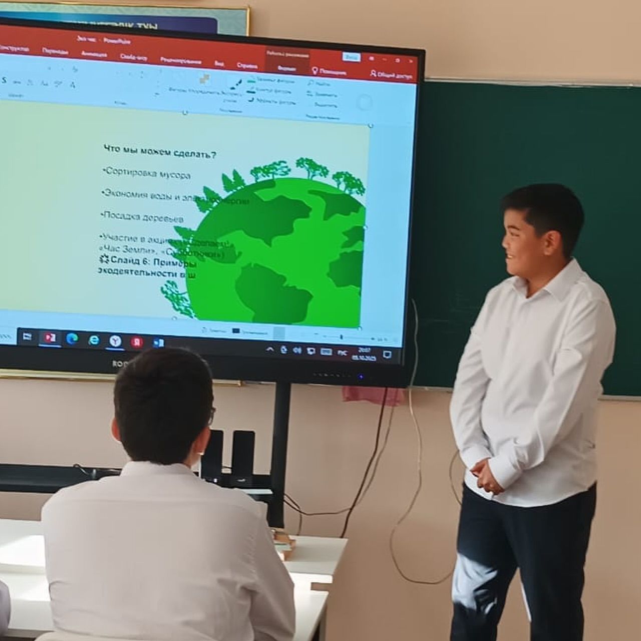 7-ші сыныпта Дүниежүзілік қоршаған ортаны қорғау күніне арналған Эко сағат өтті. Оны Саят Әмірхан мен Сайлаубек Сұлтан дайындады, Оқушылар топтарға бөлініп, мына сұрақтарға жауап берді: