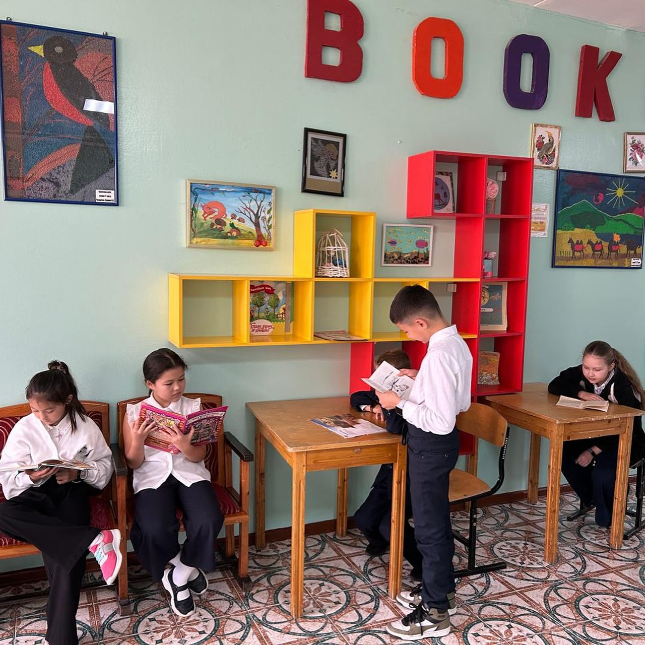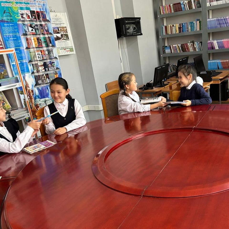 Буккроссинг алаңында 4-сынып оқушыларымен «Әлемді кітап арқылы танимыз» тақырыбында кезекті кітапхана сағаты өтті.