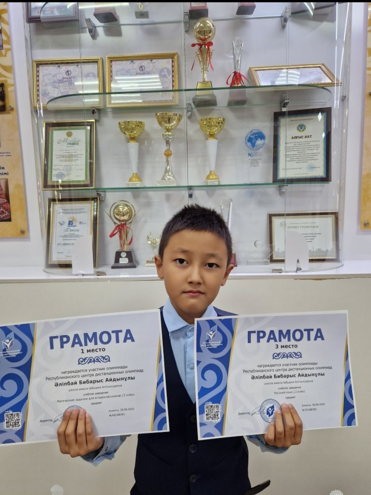 2Ж сынып оқушысы Әліпбай Бибарысты математикадан логикалық есептерді шешу бойынша Республикалық олимпиадада 1-орынды және орыс тілінен 3-орынды алуымен құттықтаймыз! Жас зияткерге жаңа жаңалықтар ме…