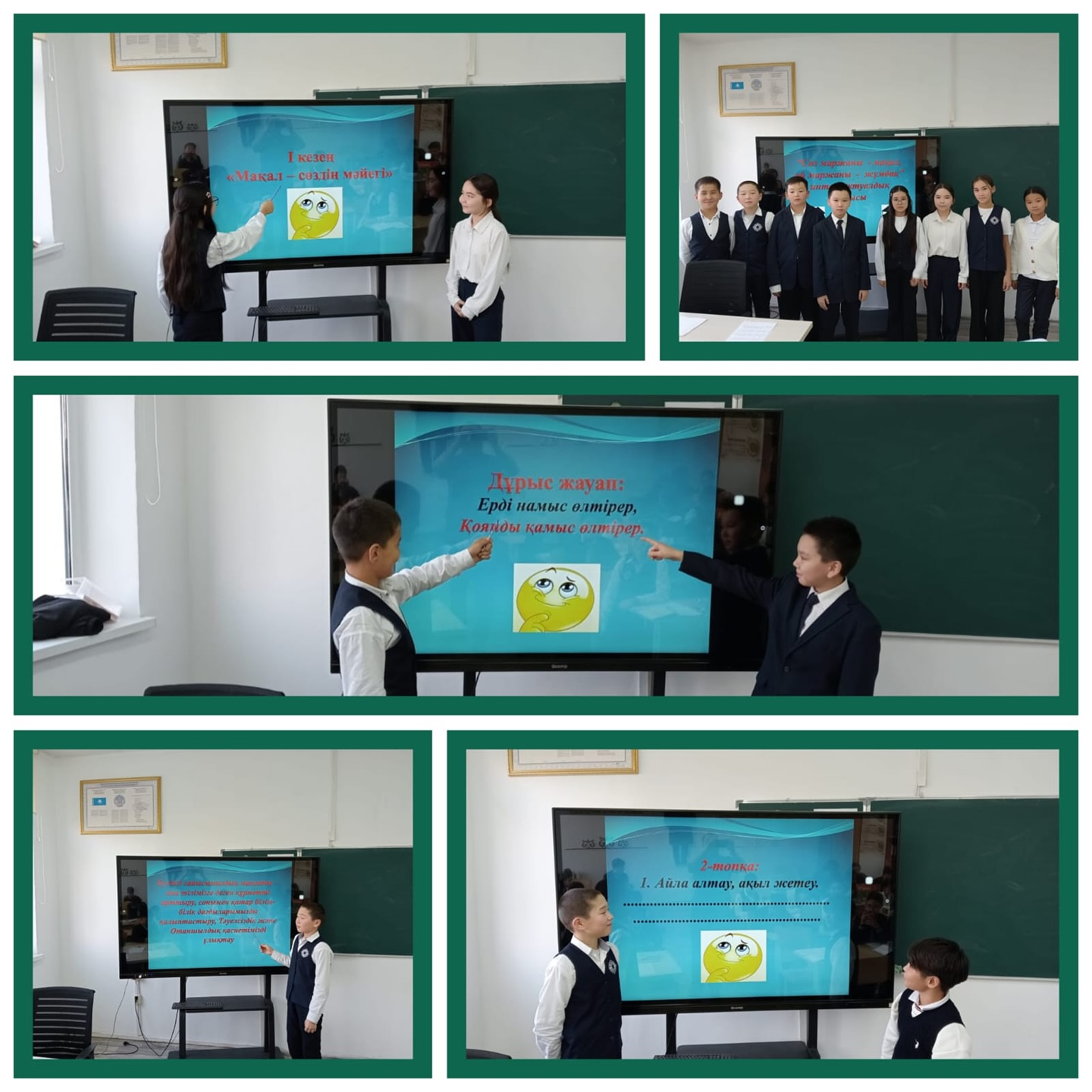 "Жас Ыбырай" үйірмесінің мүшелері "Сөз маржаны - мақал, ой маржаны - жұмбақ" тақырыбындағы интеллектуалдық сайысына белсене қатысты.