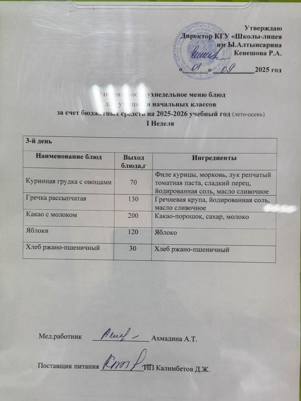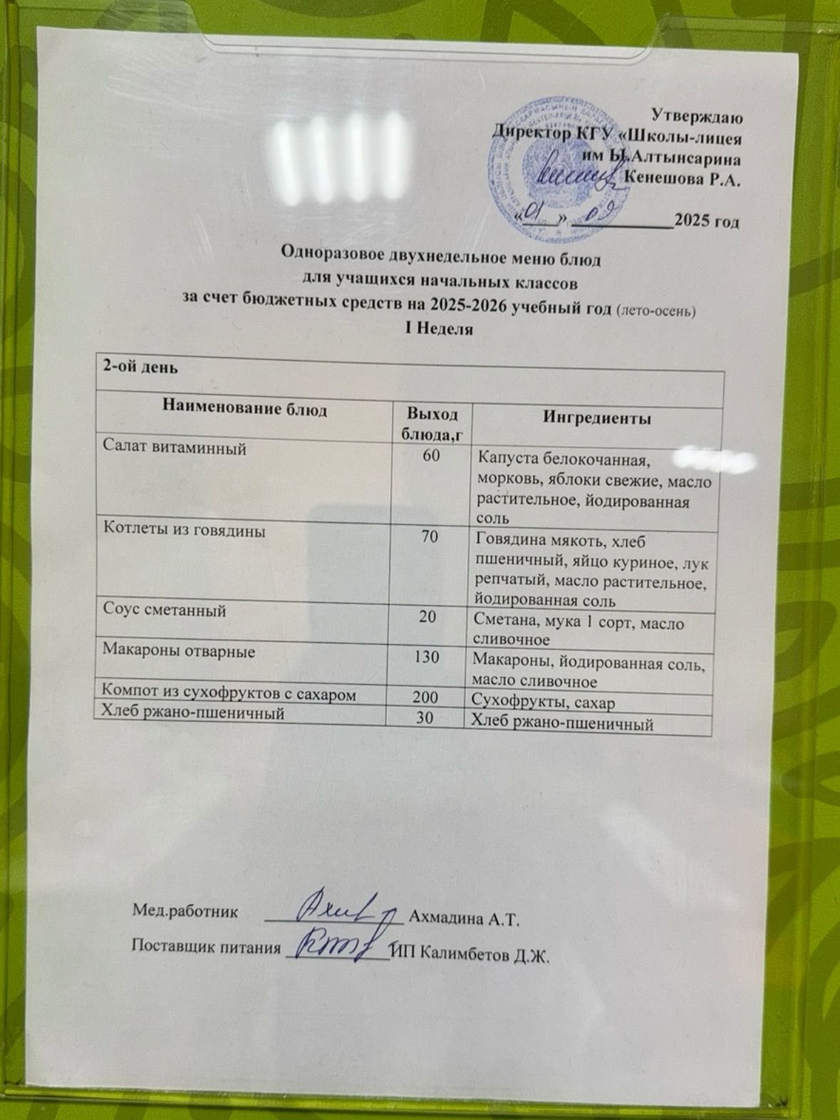 Одноразовое двухнедельное меню блюд для учащихся начальных классов