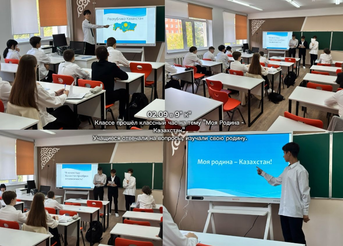 9 "К" проведен воспитательный час на тему "Моя Родина - Казахстан!".