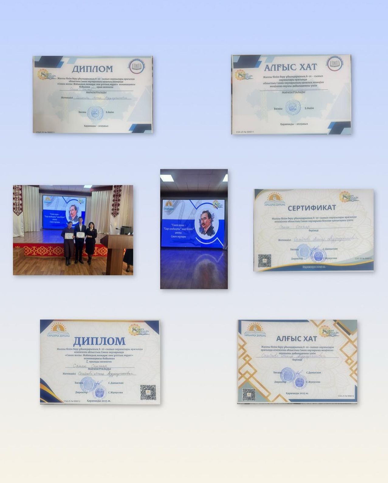 10 “Ә” сынып оқушысы Санак Санжар 2025 жылдың 8 қазанында өткен облыстық Сәкен оқуларының қалалық кезеңінде 1-орынға иеленіп, облыстық кезеңге жолдама алды. 10 қазанда өткен облыстық кез…