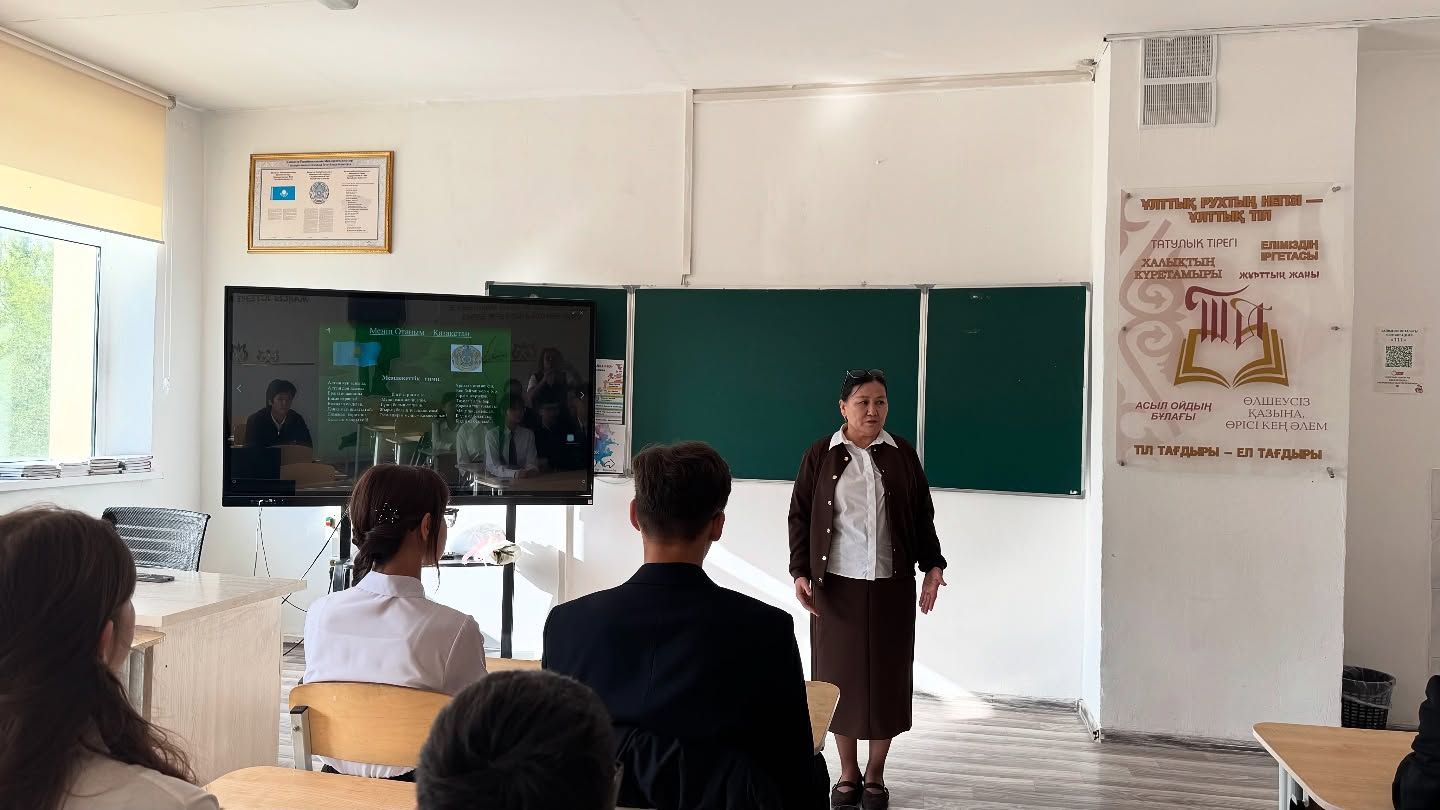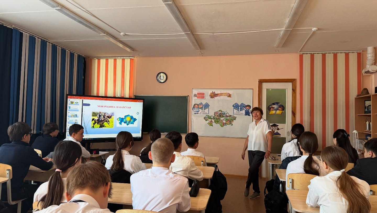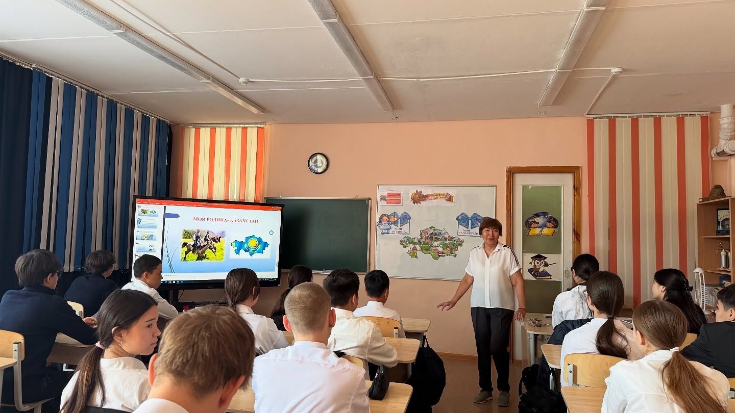 В 9 классе «Е» проведен воспитательный час на тему «Моя Родина - Казахстан!».