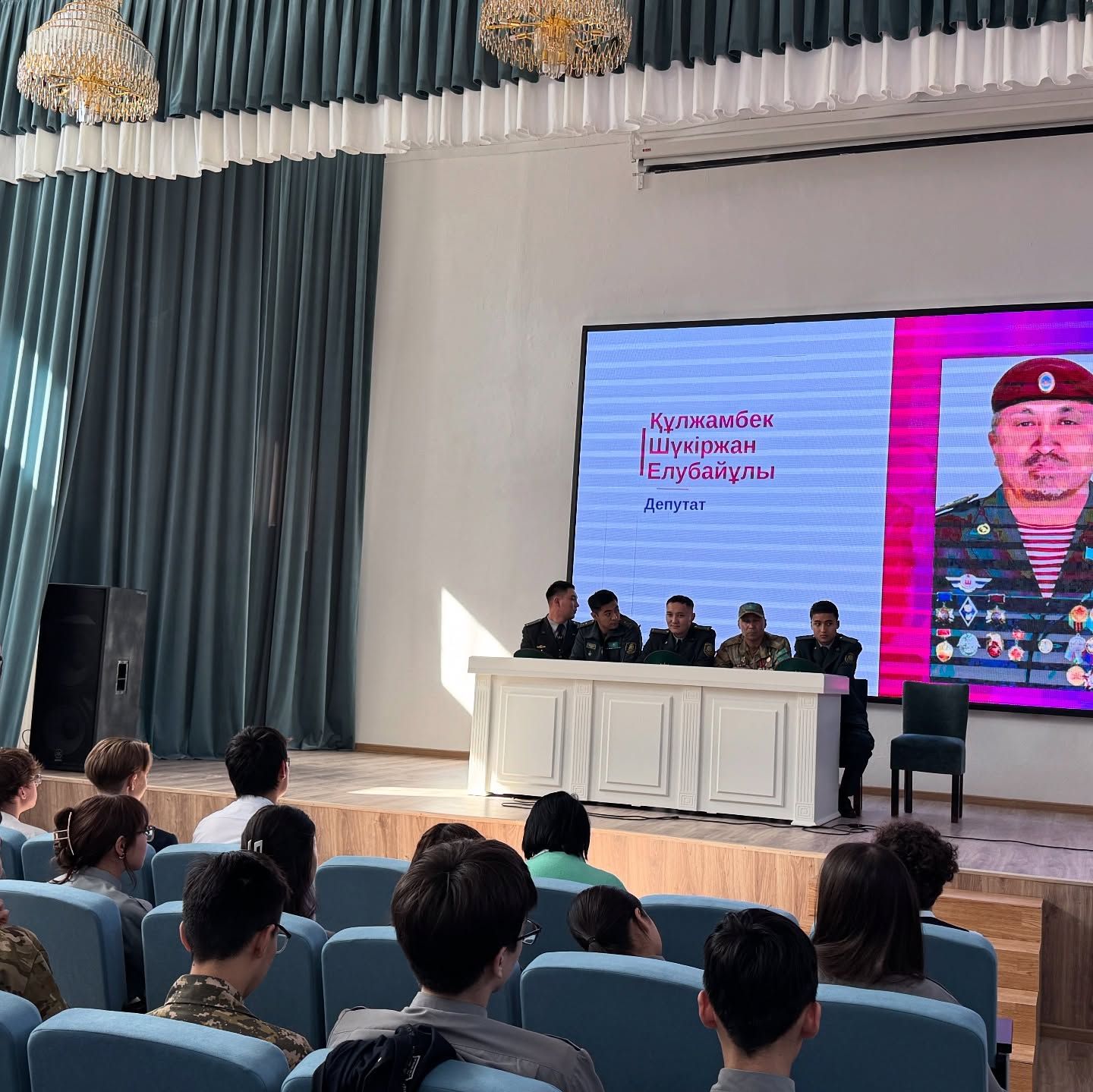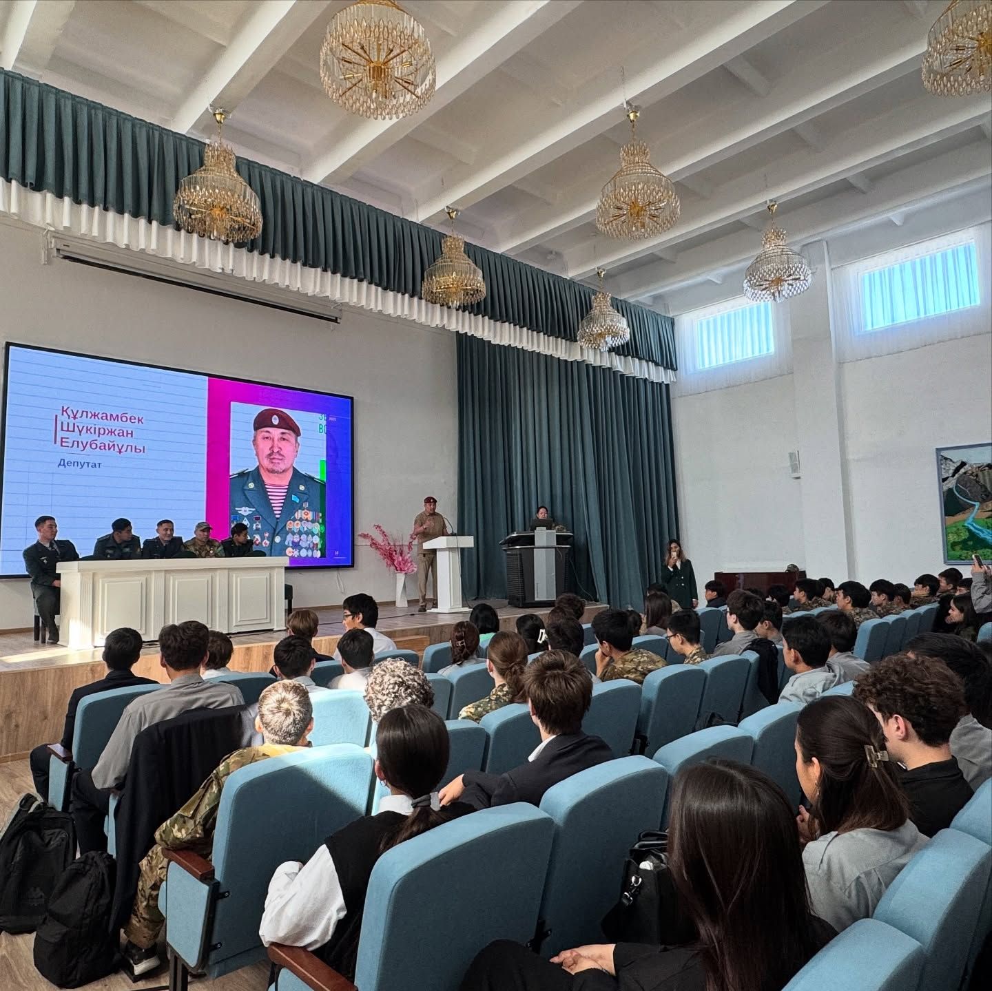 В нашей школе прошло особое мероприятие, посвящённое патриотическому воспитанию учащихся 9, 10 и 11 классов. Встреча состоялась с участием почётных гостей – депутата Кулжамбека Шукыржана Елуба…