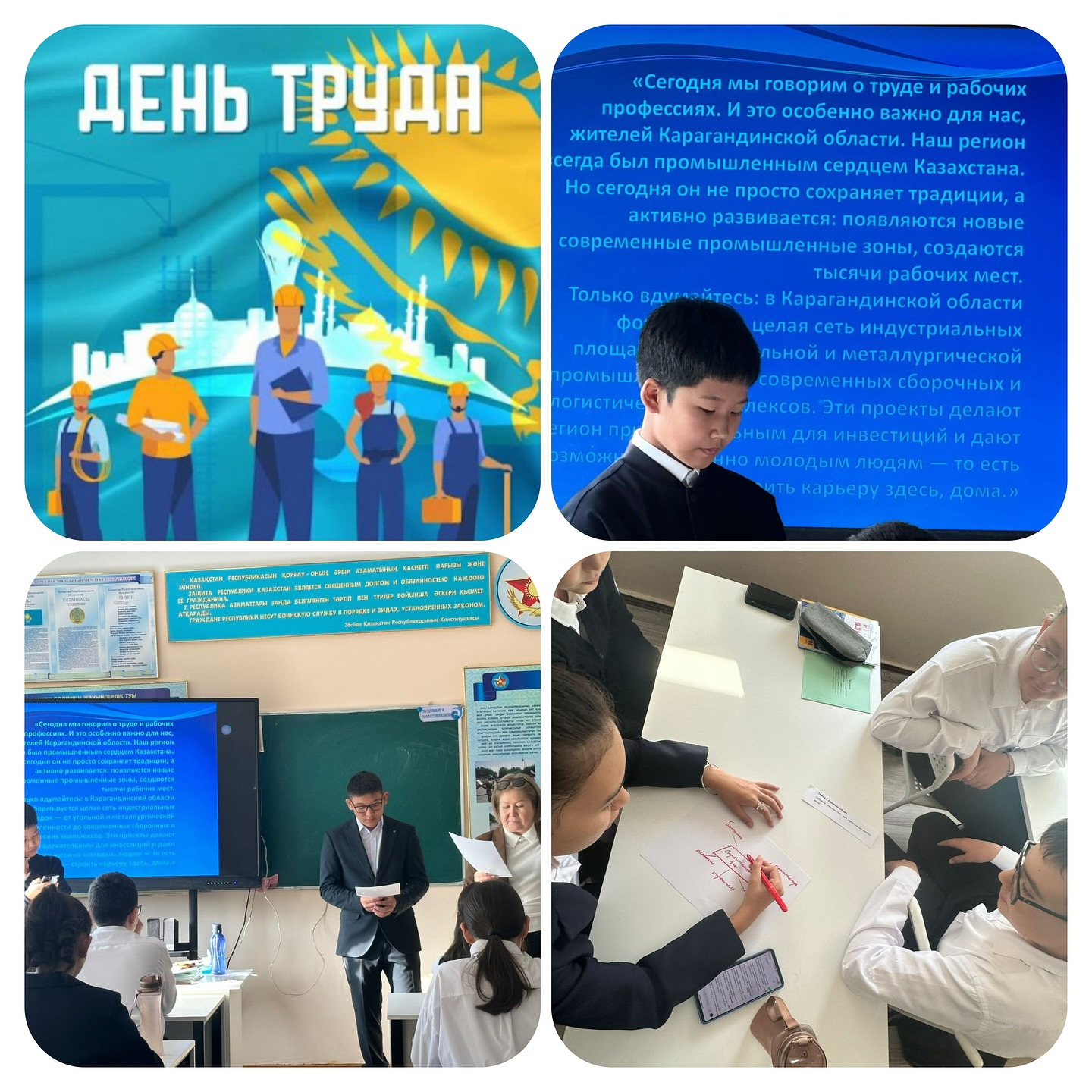 «Адал азамат» 22 сентября на втором смене прошла тематическая линейка посвященная Дню труда, в классах прошел единый классный час,