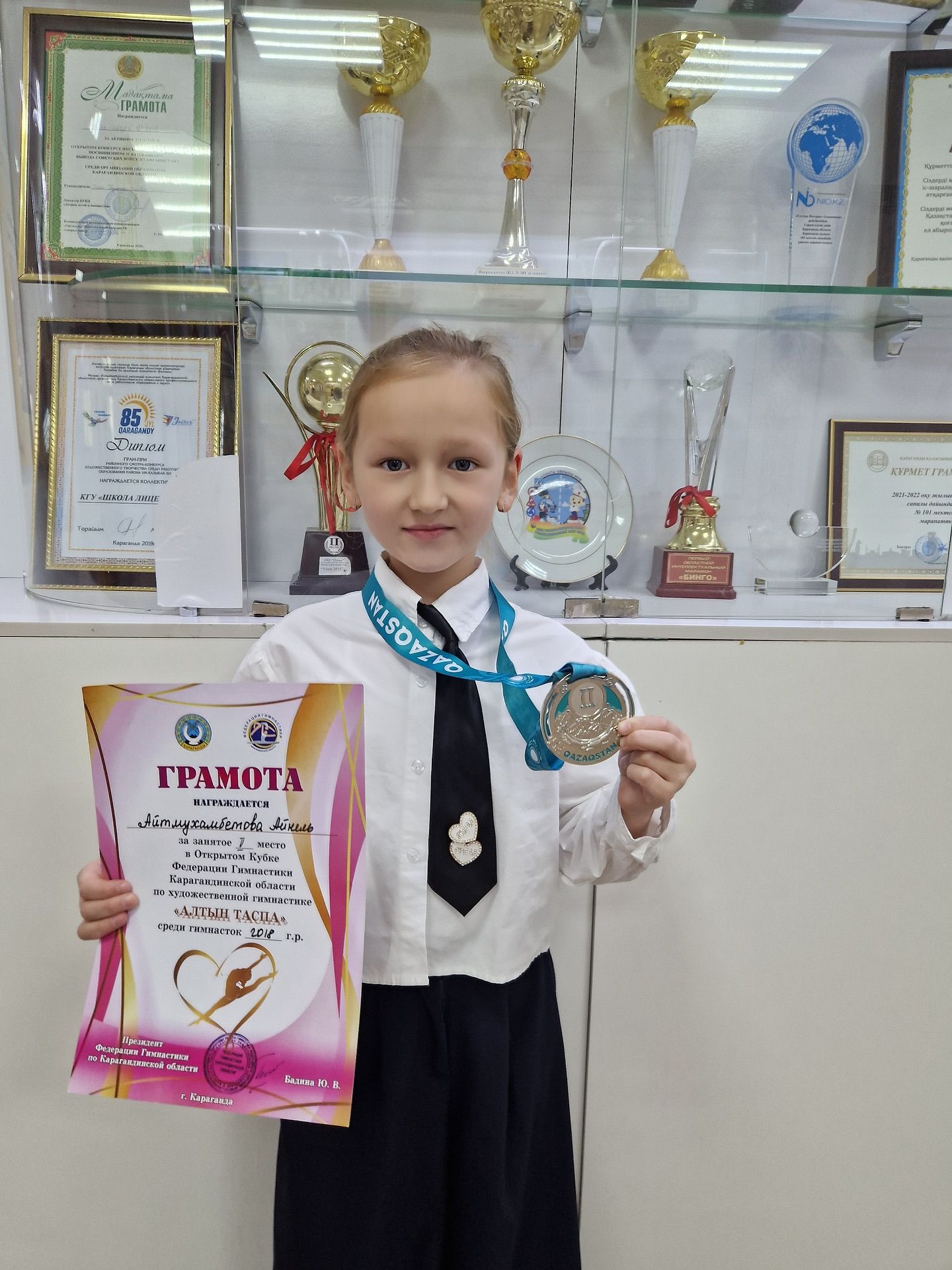 Поздравляем ученицу 2М класса Айтмухамбетову Айнель с занятым 2 местом в Открытом Кубке Карагандинской области по художественной гимнастике «Алтын таспа»! Желаем Айнель новых побед!