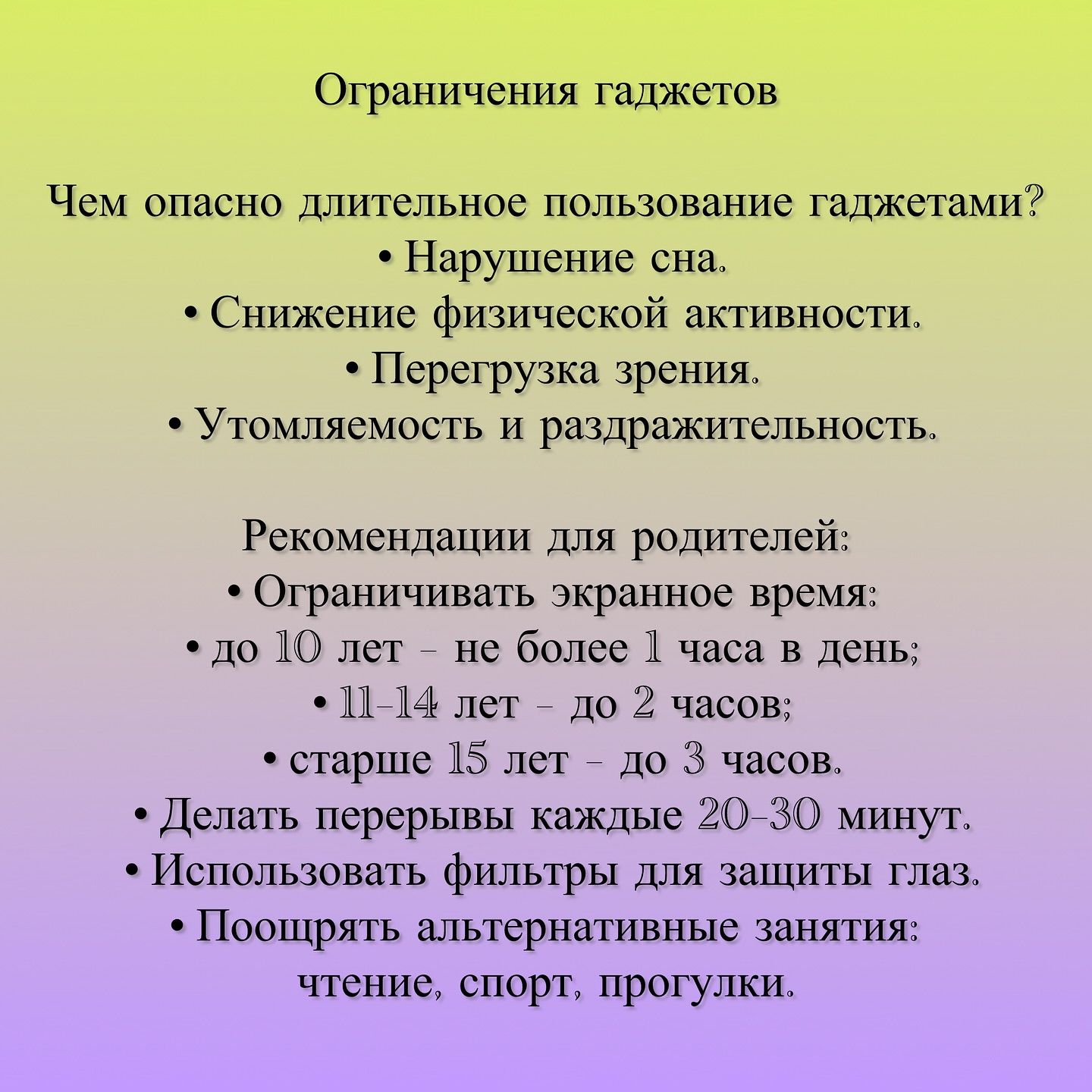 Ограничения гаджетов